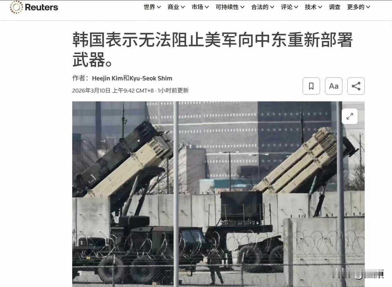 韩国星州基地6台萨德发射车被美军连夜打包,用运输机紧急运往中东,韩国总统李在明反对无效,东北亚高空反导网被直接“拆走”。这一动作,把美国的战略底牌扒得明明白白。 一、中东萨德已被打残,美军防空彻底崩盘。 伊朗用高超音速导弹精准摧毁海湾至少3套萨德(AN/TPY-2雷达全毁),美军全球仅8套萨德,中东折损近半,拦截弹库存见底、产能跟不上。 韩国这套萨德被紧急调走,就是为了填中东防空窟窿——中东萨德已基本失效,美国只能拆亚太补中东。 二、第一岛链被放弃,防线退至第二岛链 美军撤走韩国萨德、保留关岛萨德,等于放弃第一岛链核心高空反导,把防线收缩到以关岛为核心的第二岛链。 东北亚防空漏洞被撕开,只能靠伯克级宙斯盾、爱国者临时补位,面对饱和攻击,防御形同虚设。 三、以色列>东亚,美国盟友分三六九等 为保以色列,美国毫不犹豫抽走韩国核心反导装备,韩国安全在美国眼里,远不如以色列重要。 韩国当年顶着巨大压力部署萨德,如今被美国说调走就调走,所谓同盟,不过是美国的耗材。 四、一句话戳穿本质 美国全球霸权已到拆东墙补西墙的地步:中东打烂、亚太抽血、盟友牺牲。 韩国萨德被调走,不是战术调整,是美国全球军事资源枯竭、战略收缩的铁证。