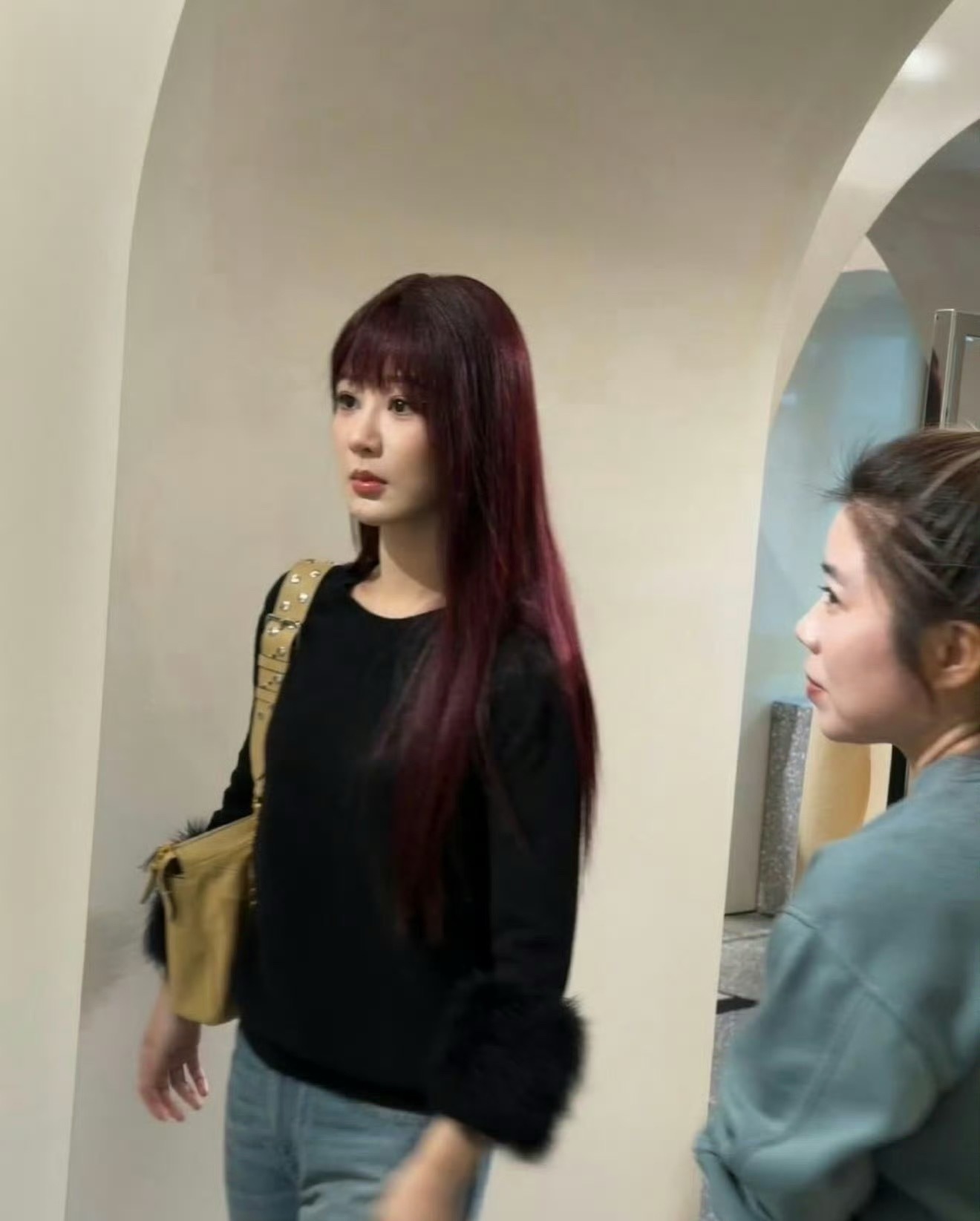 杨紫罗马时装周探店路透,染了紫红发好不一样的风格,又美又飒🥰杨紫染了红发