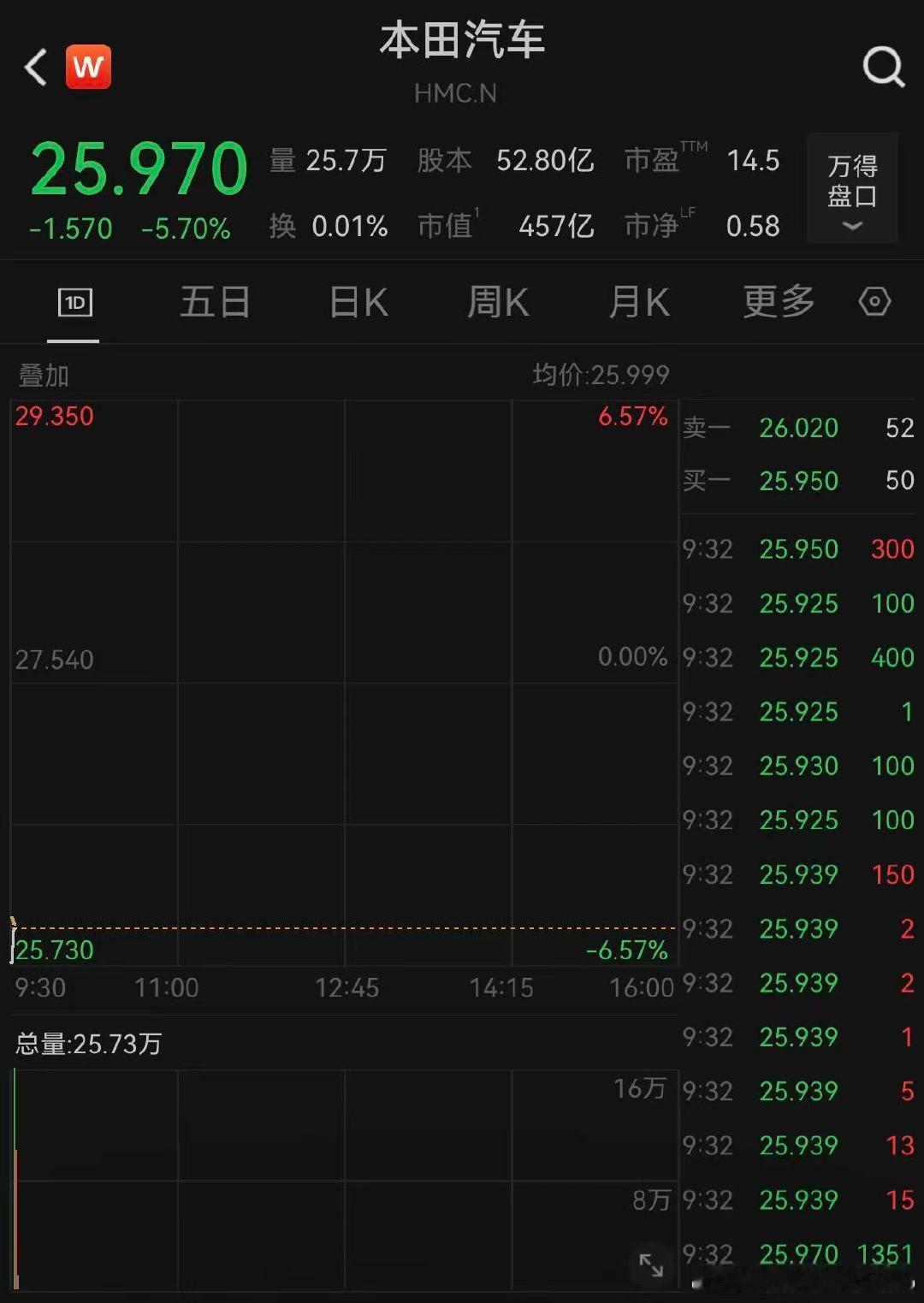 【本田汽车暴跌】本田汽车跌逾6% 3月12日晚间,美国三大股指开盘走低,标普500指数跌0.83%。本田汽车跌逾6%,预警本财年运营亏损最高可达36亿美元。理想汽车跌近4%,2025年第四季度收入总额同比降35%。 (wind)