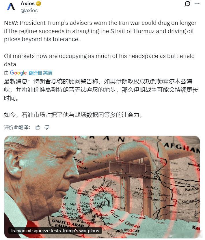 特朗普的顾问警告称,如果伊朗成功封锁霍尔木兹海峡,并将油价推高到特朗普无法容忍的地步,那么伊朗战争可能会持续更长时间。有人留言:让我保持客观!特朗普解雇了他那些受过良好教育的顾问,却招来了几个一窍不通的顾问!现在,特朗普不仅输掉了这场战争,而且还深陷泥潭!美国海军已逃离伊朗周边海域海外新鲜事美国伊朗冲突黄媒不会说的真相