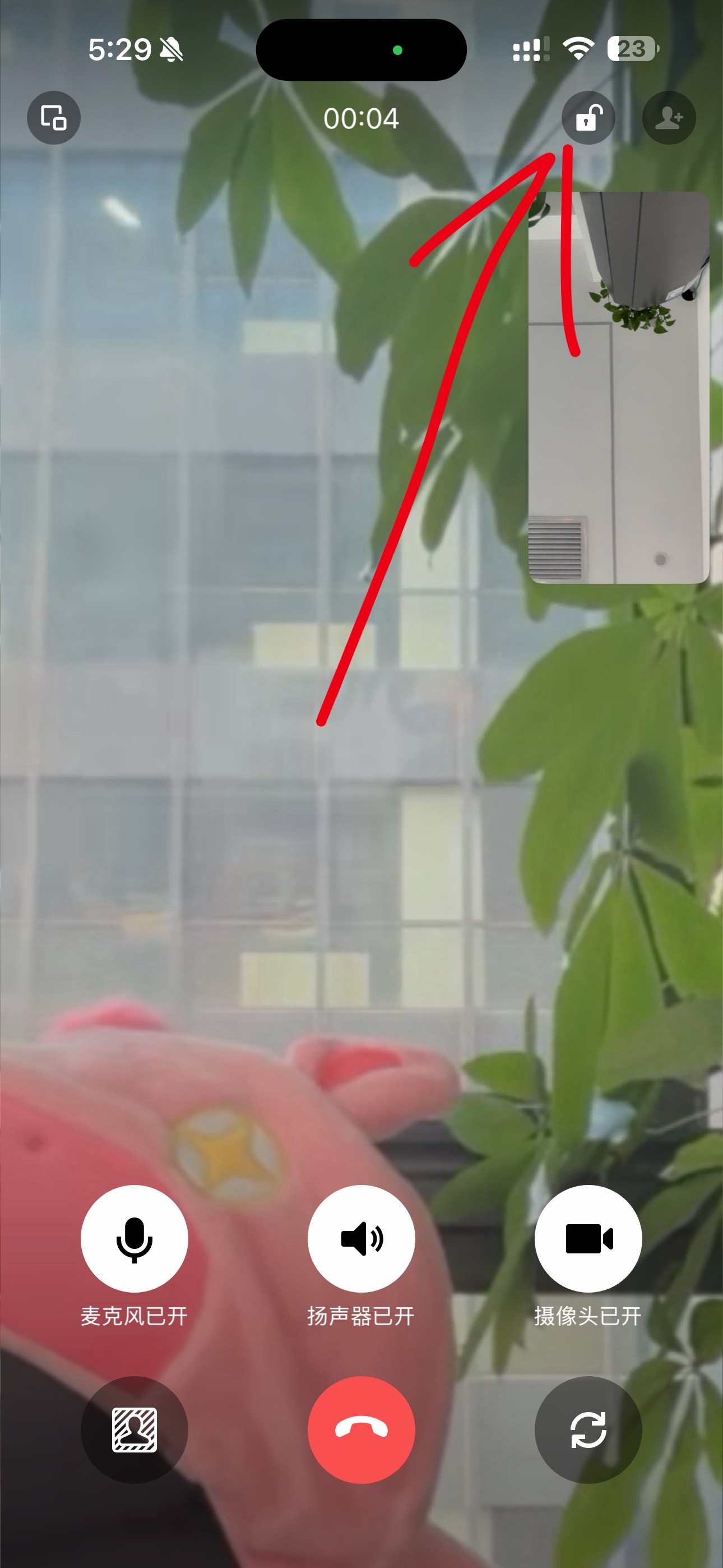 2、视频通话锁定:视频通话时右上角有一个锁的标志,点击后可以锁定当前通话界面,防止误触挂断。锁定后点击屏幕,会显示屏幕已锁定,再次点击锁的标志就可以退出锁定。