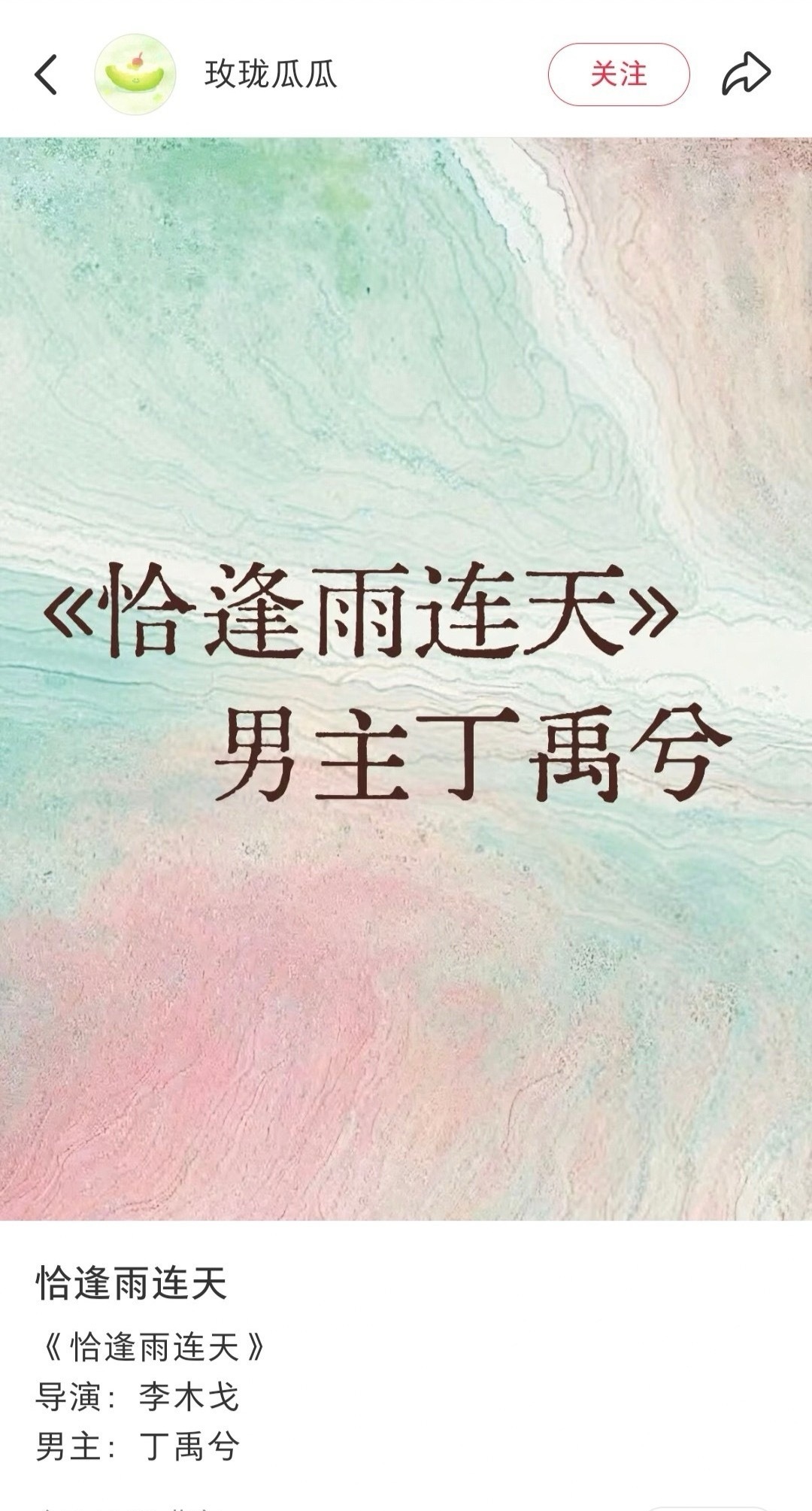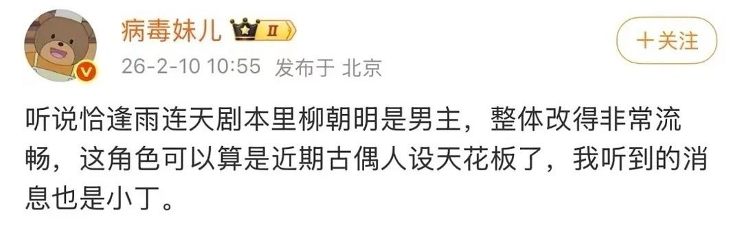 S➕古偶《恰逢雨连天》定男选女,男主丁禹兮,有瓜主说女主暂定卢昱晓,现在又变成白鹿了。