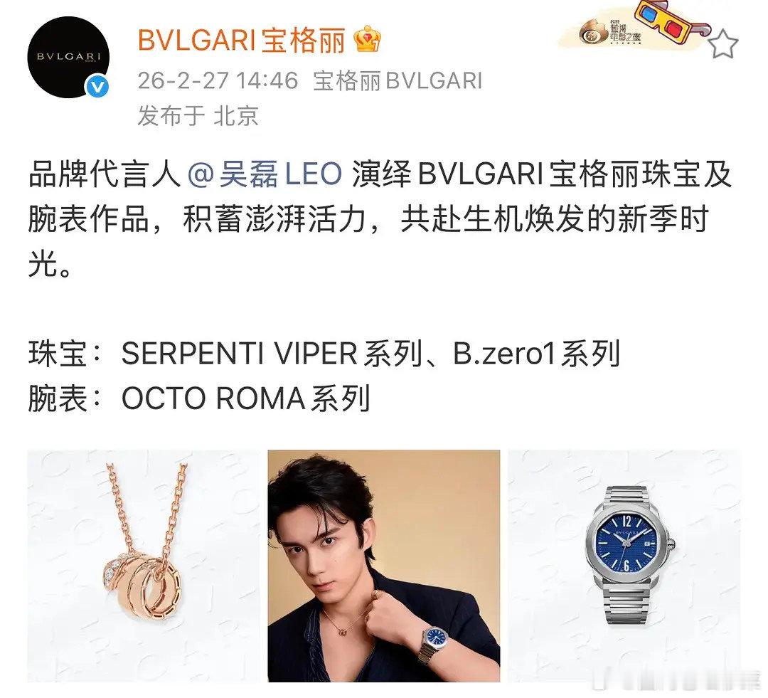 张凌赫捆绑吴磊又被官方秒了,不仅吴磊工作室秒辟谣,正午阳光也来了,宝格丽吹🐮是唯一男星代言人也被官方秒了