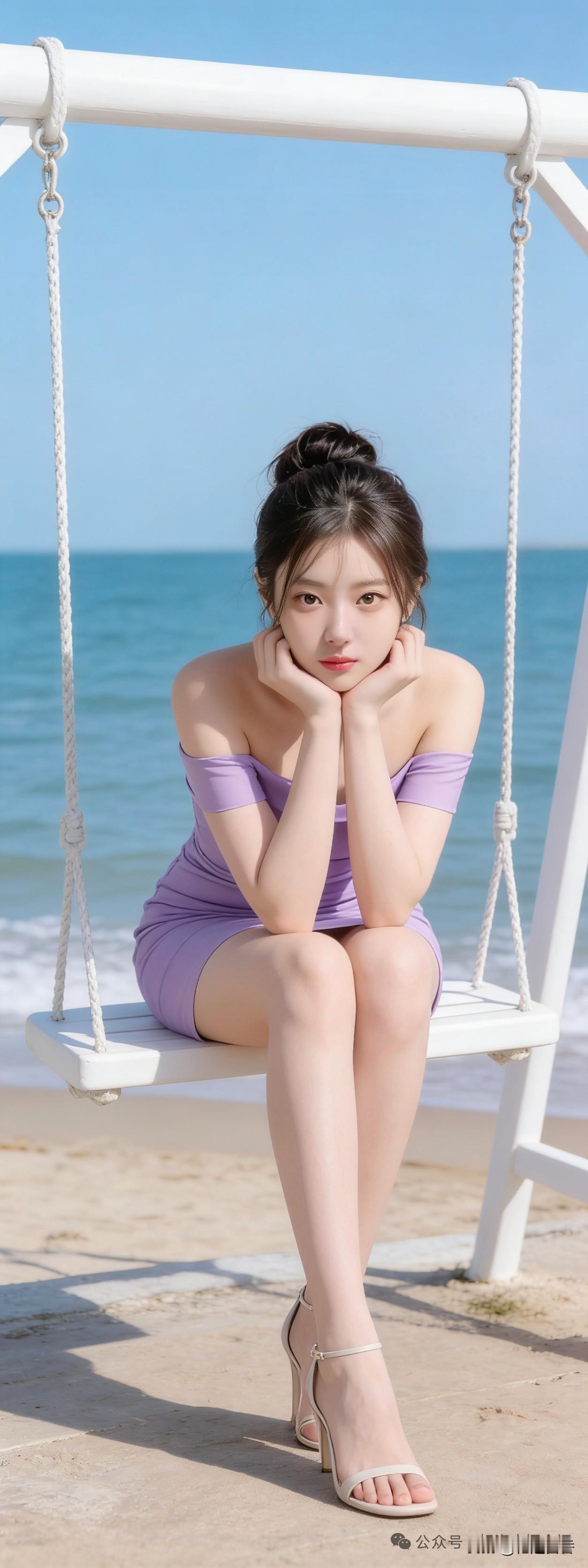 阳光下的清新AI少女,优雅蓝裙,甜美动人。