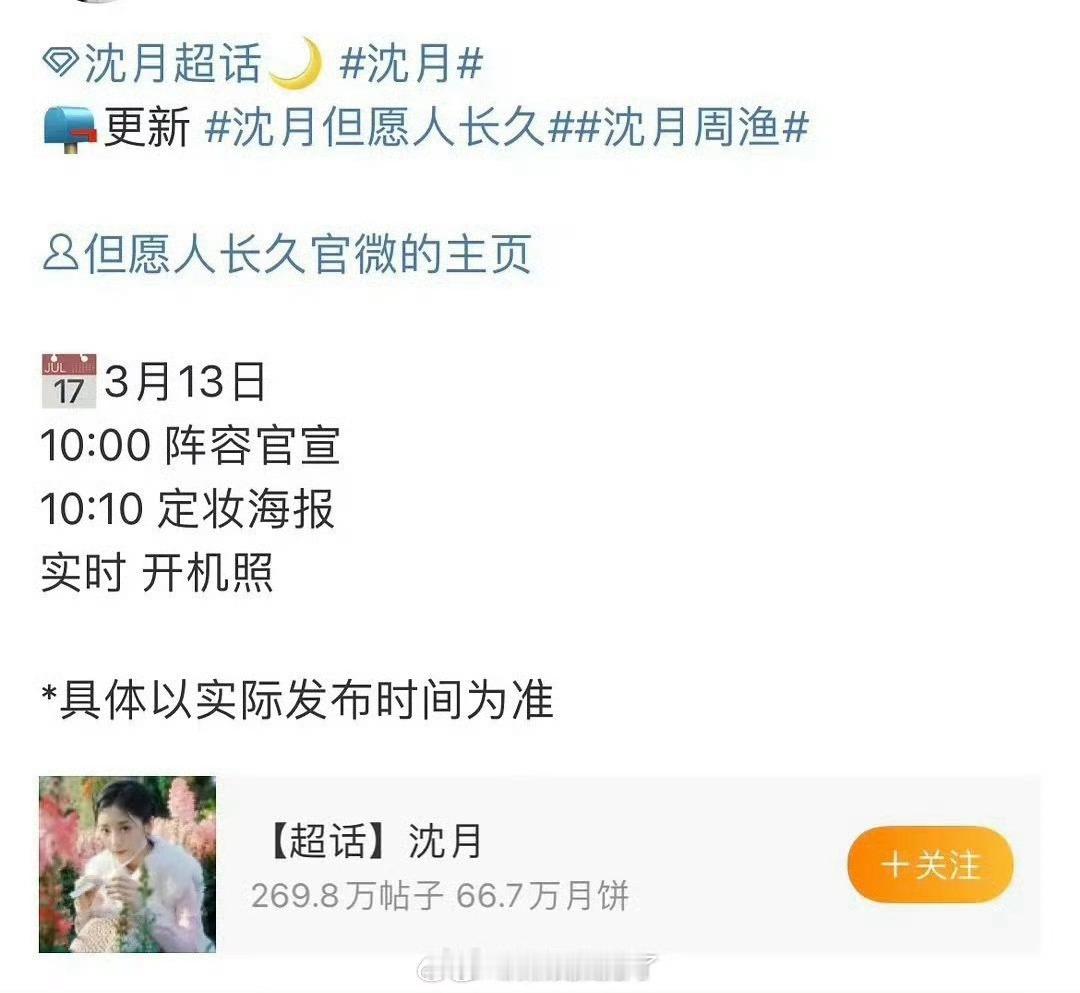 张晚意、沈月《但愿人长久》官宣节奏