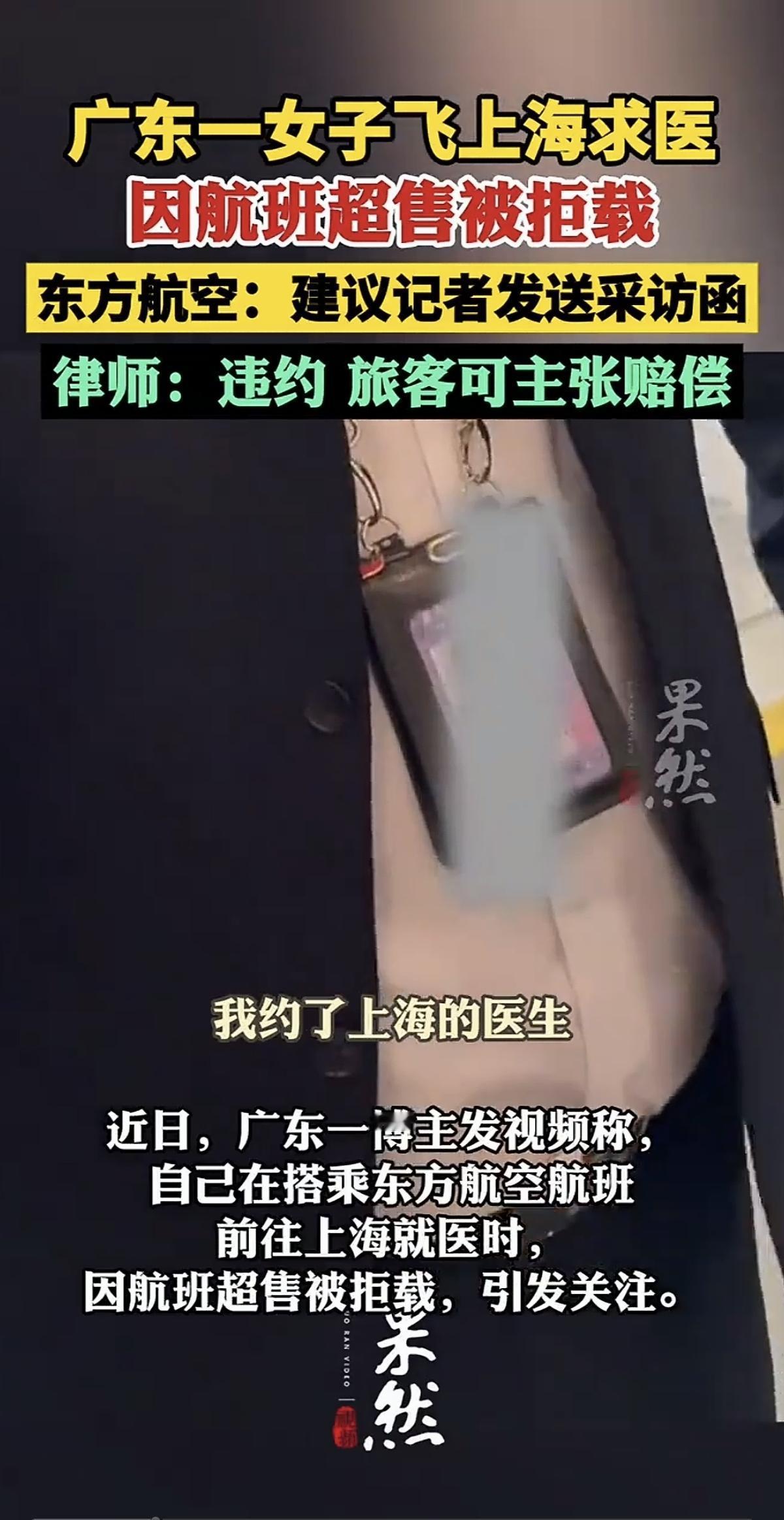 “过分了!”女子本打算飞上海求医,好不容易才挂上的号,没想到在登机口竟然被拦,说当次航班超售,她不能登机了。 竟然还有这样的事儿? 这位女乘客在登机的前一天在线上办理了登记手续,选好了座位,当天也过了安检,已经到了登机口准备登机了,竟然被工作人员拦了,说航班超售。 我首先不理解的是,现在的信息系统这么发达,怎么还会有航班超售的事发生? 例如,我就没听说过高铁票有超售的事发生。 其次,就算航班超售了,工作人员应该可以从系统中知道,是哪位乘客不能按时乘机了,怎么就不能提前通知呢? 例如在人家去机场之前,哪怕是当天在广播里通知一下也好呀! 从这位女乘客的角度考虑,她是好不容易挂了号,想飞去上海求医的,当天比她后到的乘客都上了飞机,为什么偏偏不让她登机? 但是,从航司的角度考虑,航司也不可能事先就知道她的具体情况。 所以,航司不会有意挑选她不能按时上飞机。 工作人员声称,他们是大企业,很重视服务,的确是航班的原因,道歉并且同意赔偿400元。 态度很好地做着让乘客恼火的事情,这位女乘客还能怎样呢? 既然不能按时飞上海了,关于赔偿,她和工作人员也没有达成共识。 她表示,她是通过黄牛花了3万块买到的机票,而工作人员认为,大企业有工作流程,不会按照黄牛的票价赔偿她3万。 不管怎么说,只赔偿400元我觉得还是有点少了,毕竟是航班超售有错在先,也没能及时告知乘客,这怎么能说是大企业重视服务呢?