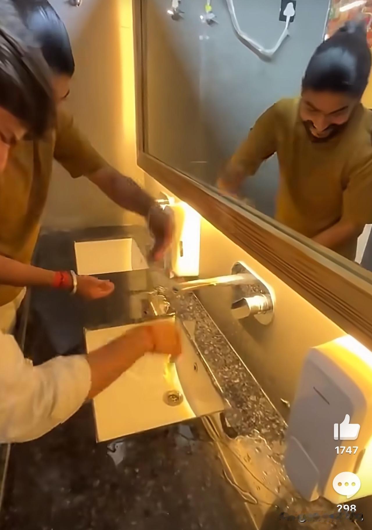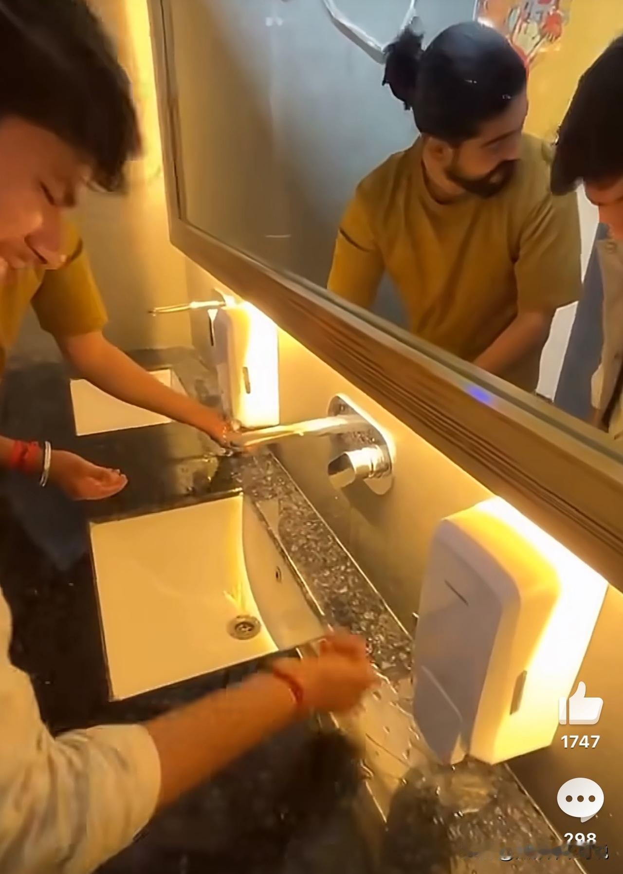 这俩印度哥们儿把日本人气的要死,竟然把卫生间的洗手液当玩具,反复的挤压浪费。最近一条两名印度男子在日本卫生间疯狂挤出洗手液的视频引发声讨,视频中不知道这俩哥们儿哪根筋搭错了,用手多次挤压洗手液后,又拿出来任由黏糊糊的洗手液从掌心滴落。然后不断重复循环这个过程,估计这两盒洗手液会被这俩家伙给轻松造光。这种浪费行为直接遭到了网友们的尖锐批评,也让日本人对印度人的印象又差了一大截。有眼尖的网友看出来,这俩货疑似是在模仿日本某些生活动作电影中的不雅动作,然后我仔细看了一下,好像还真是的。看来饥渴的三哥去日本是越学越坏了!