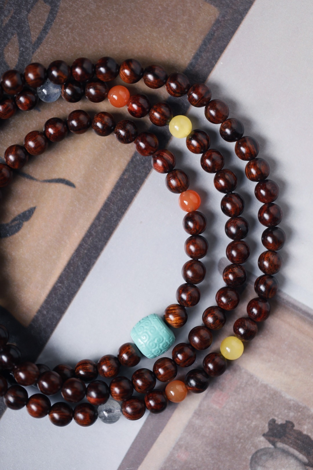 配饰:纯银、松石、蜜蜡、南红、月光石 海黄原创【淑文】6mm 108颗 手串 佛珠 念珠