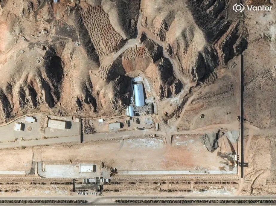 伊朗的塔列甘核设施被攻击前后的卫星照片。 可以看到伊朗已经在战争来临之前,给这一处核设施增加了混凝土顶盖,并把土盖在上面做了伪装。但是商业卫星常年拍摄的照片,可以轻易的识别出核设施前后变化情况。因为商业卫星长年累月的拍摄地面照片,形成了巨大的数据库。通过人工智能的比对,可以轻易识别出来这些照片中的建筑物变化情况。紧急增加的重点防护,就有点欲盖弥彰的意思了。 建筑物顶盖上的三个点,据传是钻地炸弹穿透以后的结果。伊朗的核设施做了尽大最大努力的防护,但是在钻地炸弹之前,还是不够。 伊朗核基地出事 伊朗核设施防护 伊朗核设施空袭