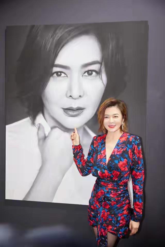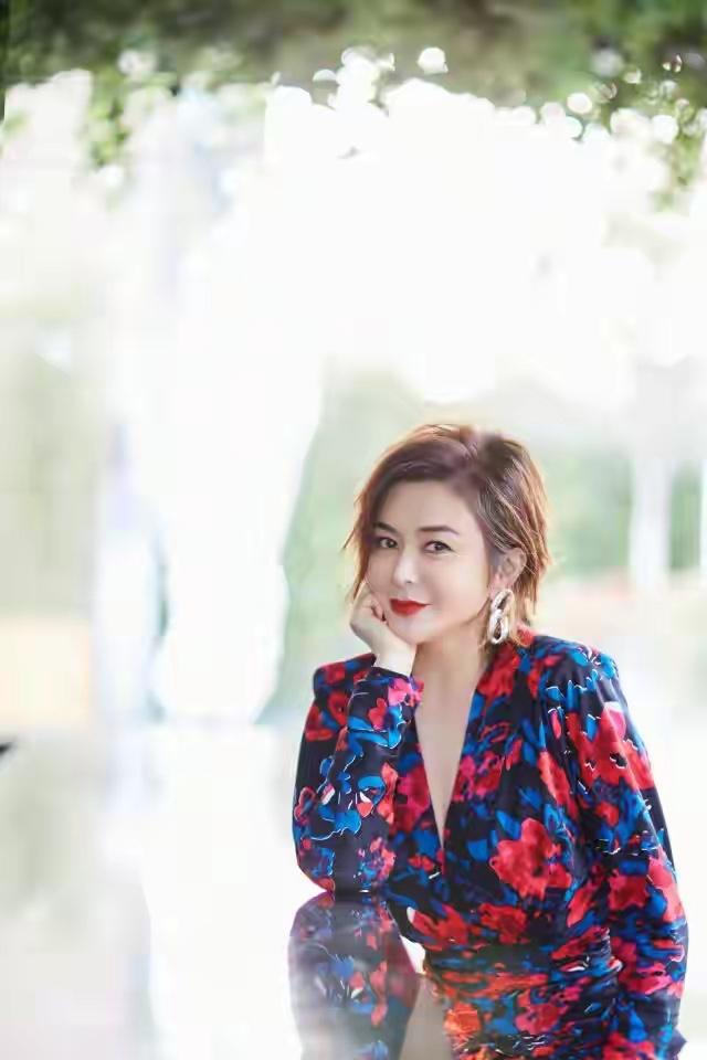 关之琳身穿印花裹身连衣裙,黑底衬着浓烈的红与深邃蓝,大朵花卉印花自带复古港风滤镜,既张扬又不失高级感,完全不会显得俗气。V领裹身设计是点睛之笔,恰到好处地露出锁骨与颈部线条,展现了女性柔美感。腰间的褶皱收腰设计则精准卡在腰线最细处,牢牢锁定高比例,把身材分割成利落的三七分,视觉上瞬间拉长下半身,哪怕是成熟身材也能穿出紧致感。