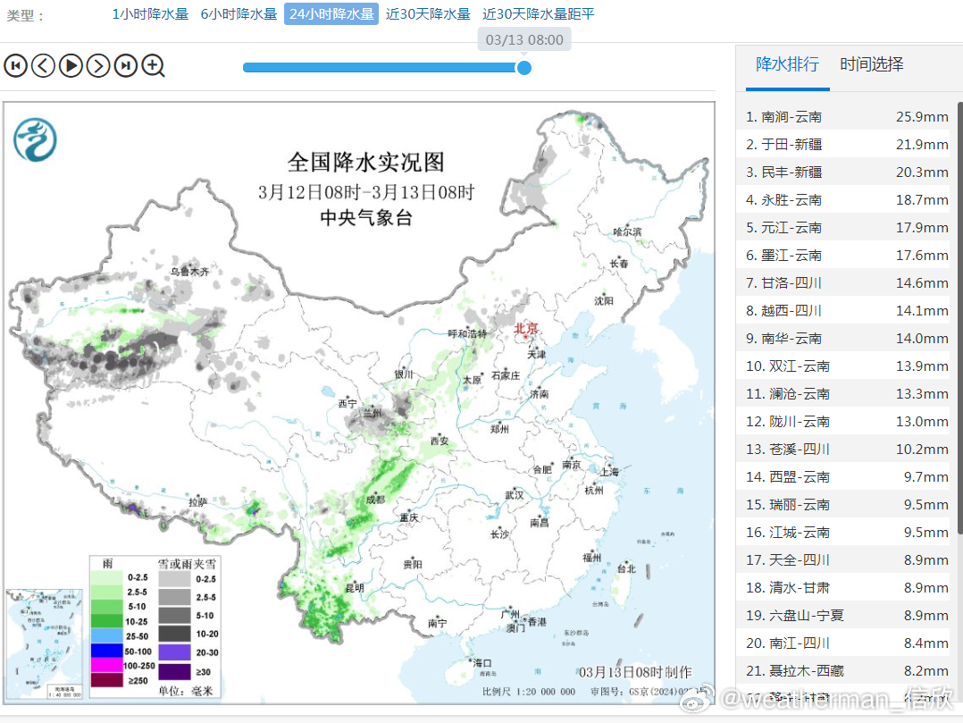 此外,13日08时-14日08时,西藏东南部、四川东北部、云南西部、甘肃东南部、陕西西南部等地部分地区有中到大雨,其中,西藏东南部局地有暴雨(50~60毫米)。14日08时-15日08时,西藏东部、云南西部、四川南部和东部、重庆、贵州北部和西部、湖北西部、陕西南部、河南西部等地部分地区有中到大雨(25~45毫米)。西藏东北部、甘肃东南部、陕西北部、山西西部等地局地有大雪(5~8毫米)。