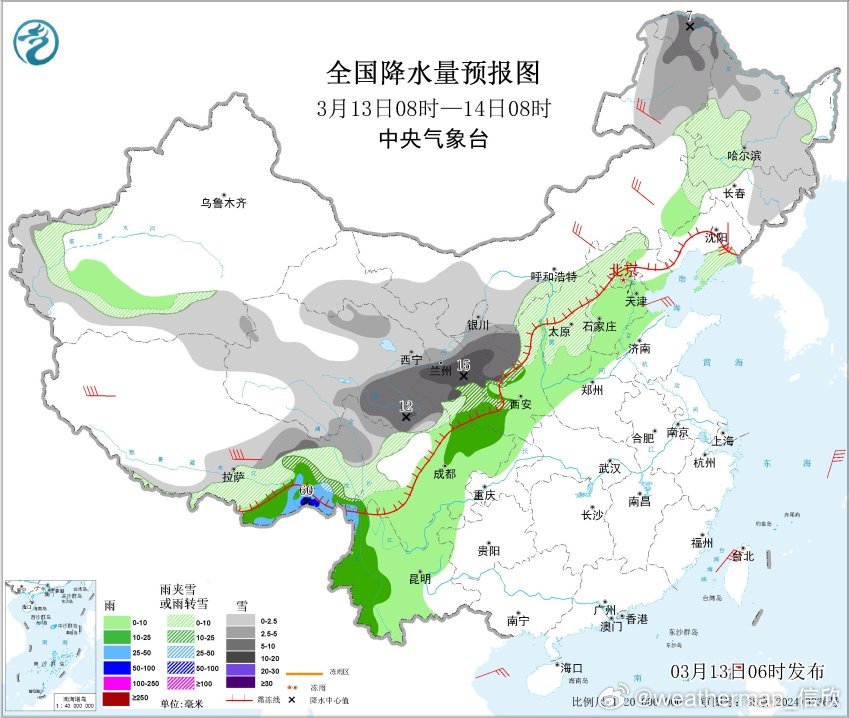 今晨中央气象台发布暴雪蓝色预警:预计3月13日08时至3月14日08时,青海东部、甘肃中南部、宁夏中南部、陕西西部、川西高原北部、西藏东北部、内蒙古东北部、黑龙江西北部等地部分地区有大雪,其中,甘肃中部、宁夏南部、川西高原北部等地部分地区有暴雪(10~15毫米),上述部分地区新增积雪深度5~10厘米,局地可达15厘米以上。