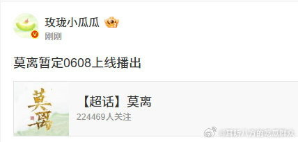 莫离暂定6月8号上线播出 期待值拉满!终于等到上线消息,6月8日准时守候开播~莫离暂定6月8号上线