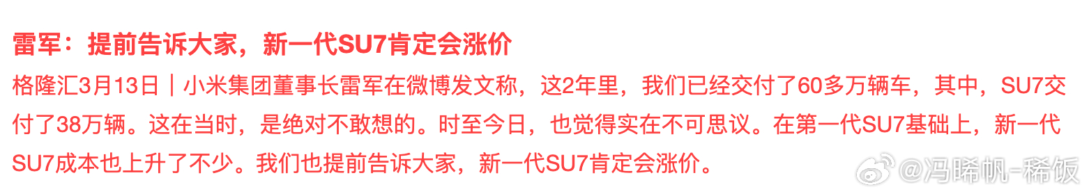 雷军的老手段了,每次都说新车价格有点贵,大家理解一下之类。先拉高大家预期,再出一