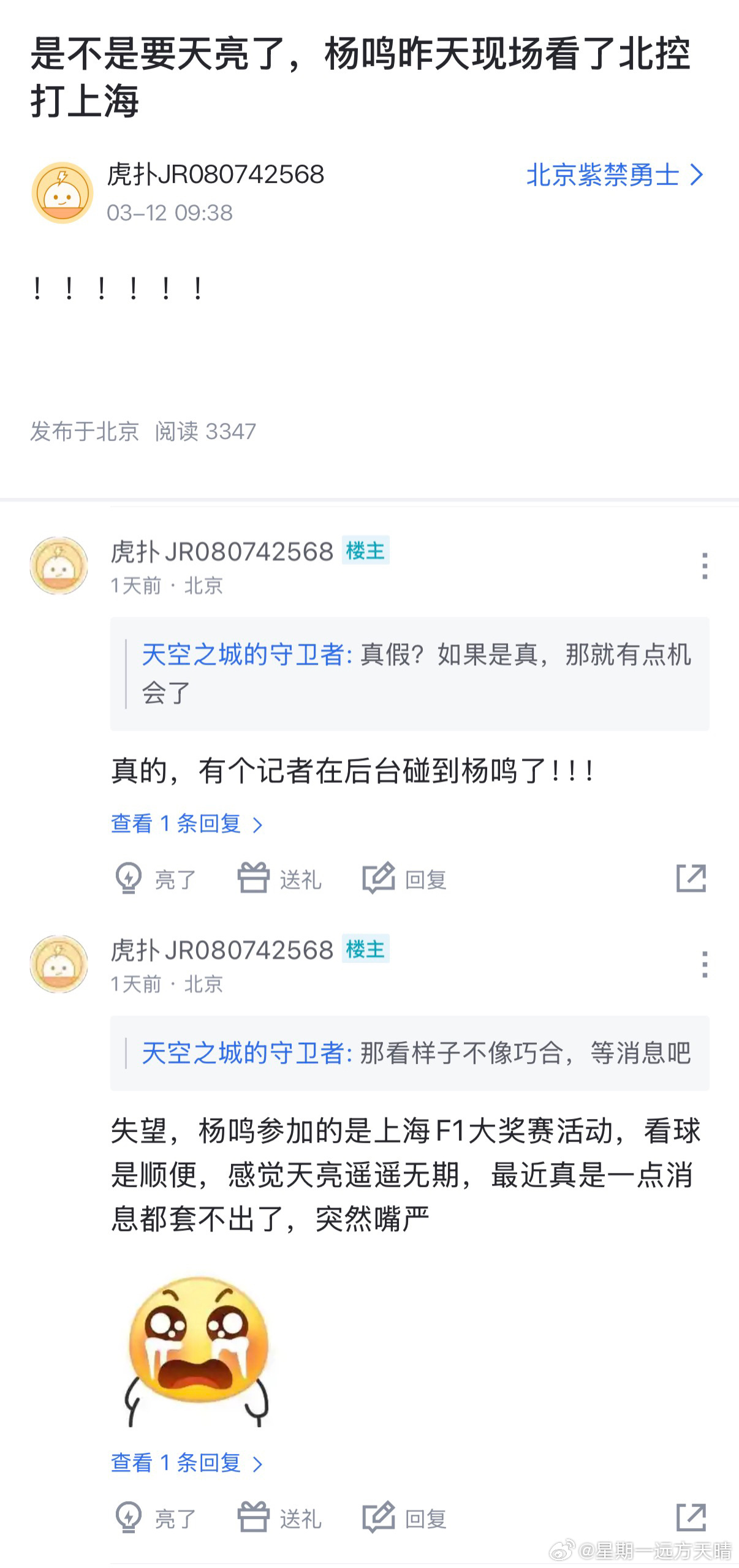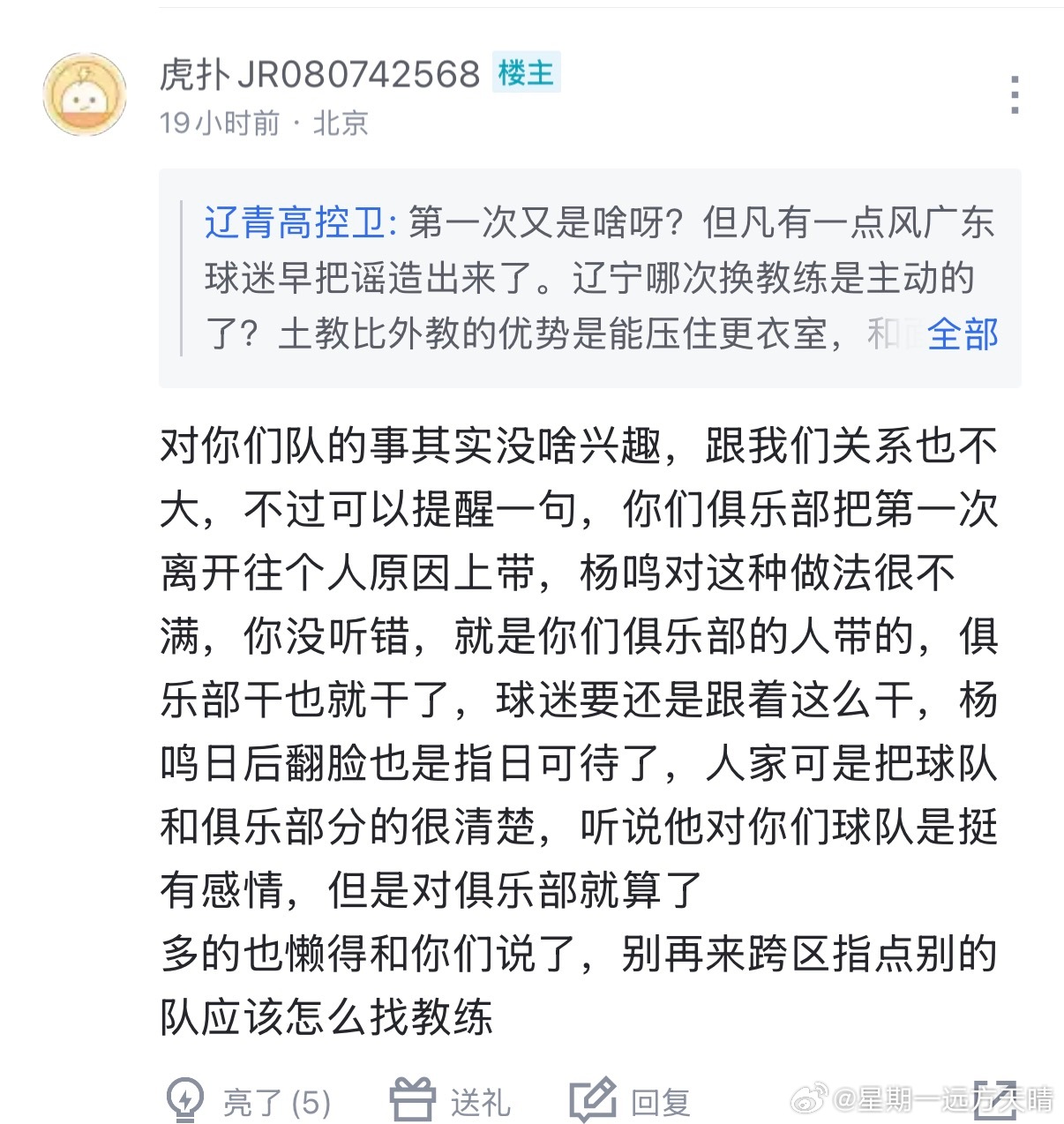 北控球迷已经疯了。休赛期被自己球队买内援耍的团团转,还是坚定不移地相信谣言。没救了。