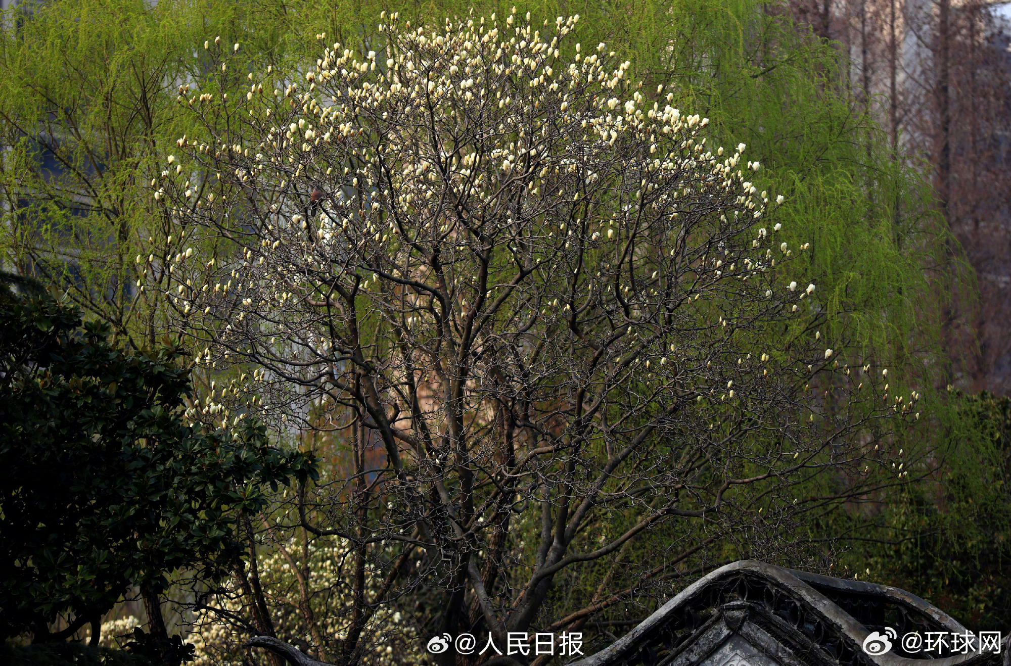 【#园林里的玉兰花秒开中国风#】3月12日,已是春暖花开时节,江苏淮安古典园林清晏园玉兰花已悄然绽放,洁白花朵迎风而立,与古建相映成趣。#花开种花家#