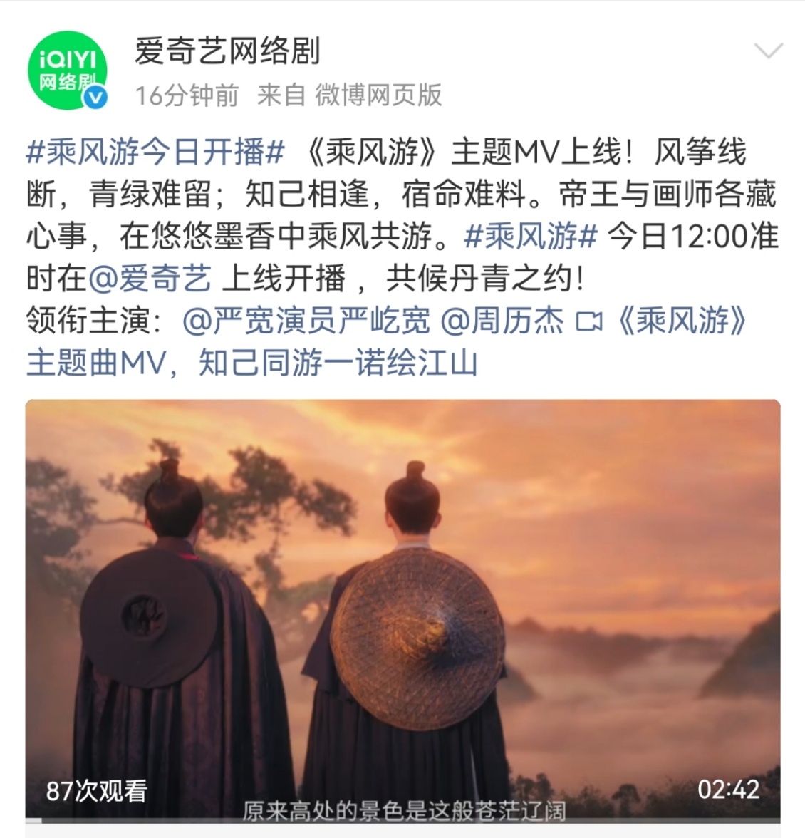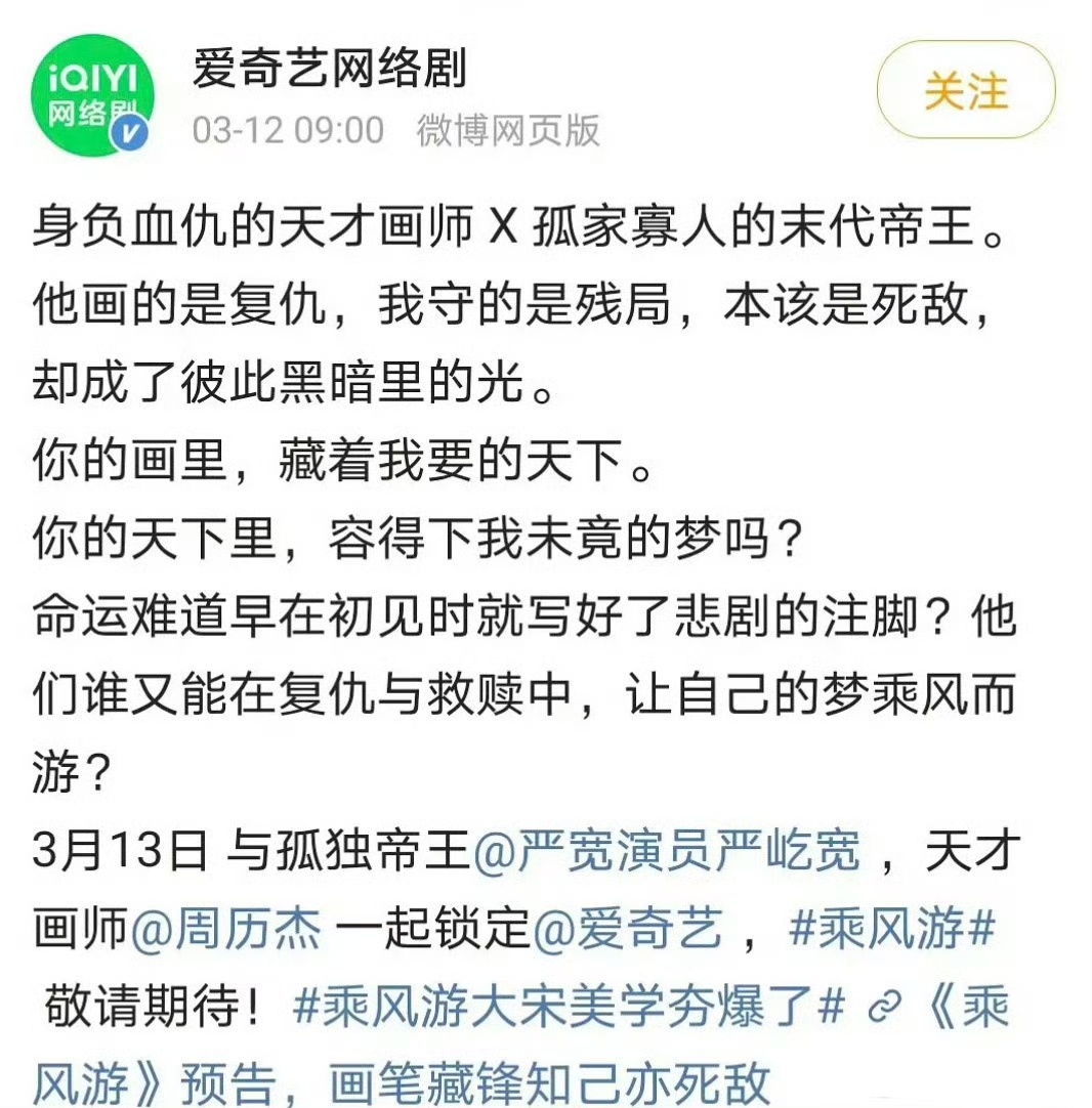 严屹宽周历杰乘风游海报严屹宽周历杰乘风游简介 严屹宽与周历杰合作新剧《乘风游》,作品已释出海报并公布剧情简介,看点值得期待。