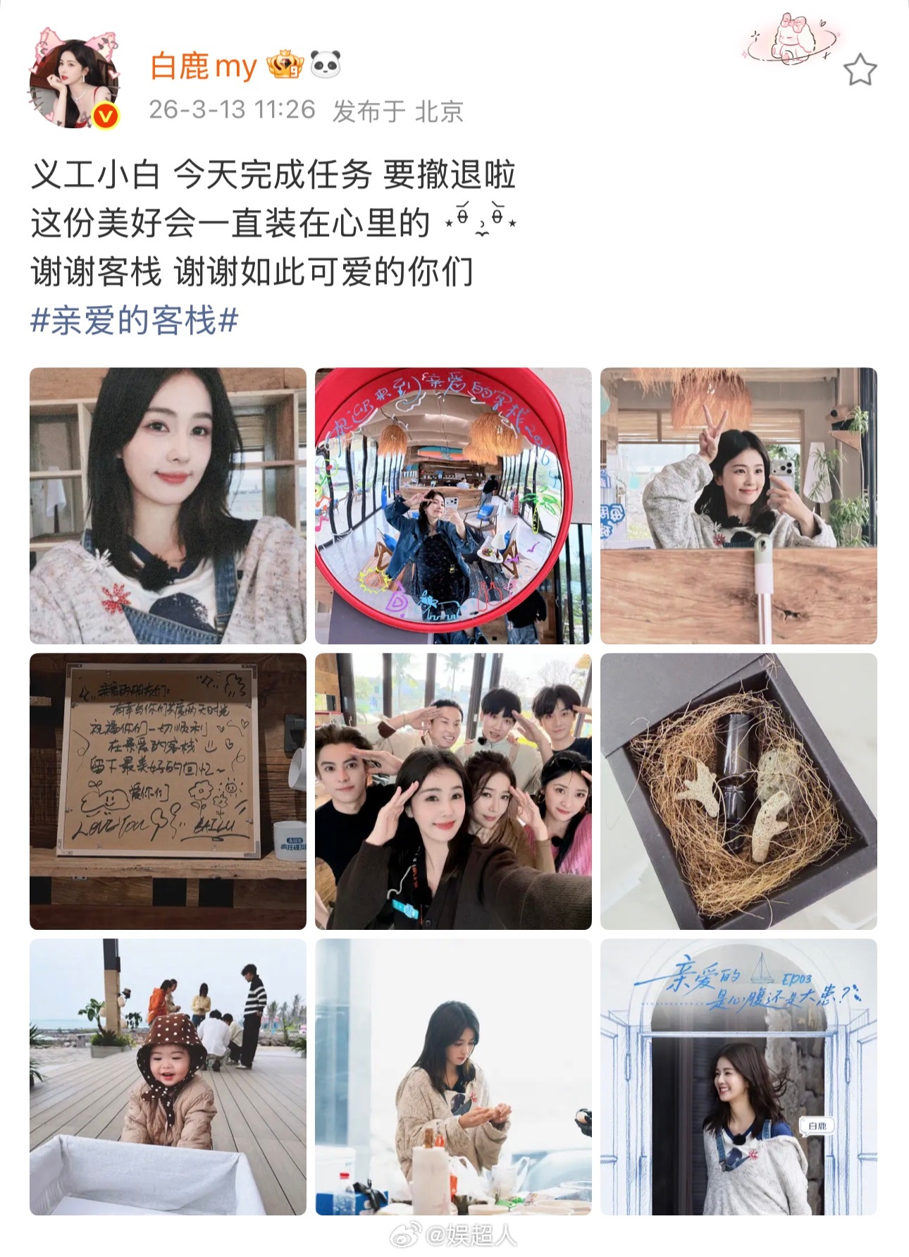 白鹿发博告别亲爱的客栈白鹿亲爱的客栈收官博白鹿发博告别《亲爱的客栈》,舍不得义