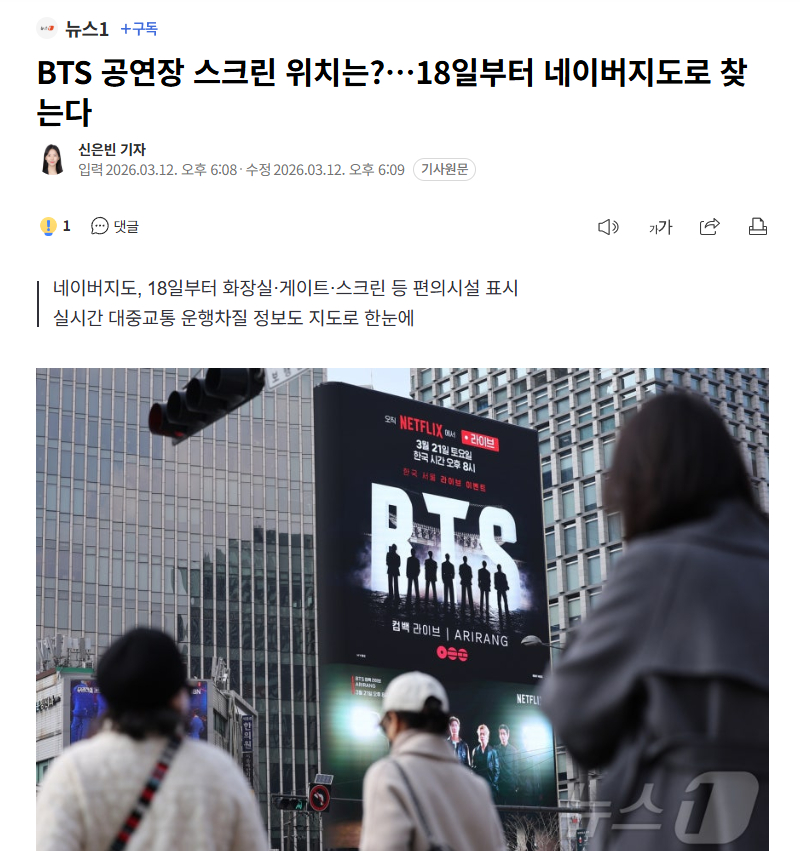 NAVER地图为应对组合防弹少年团(BTS)光化门演出前可能聚集的大量人流,将强化位置引导功能。旨在让用户能够轻松确认演出场地周边的便利设施和实时交通信息。