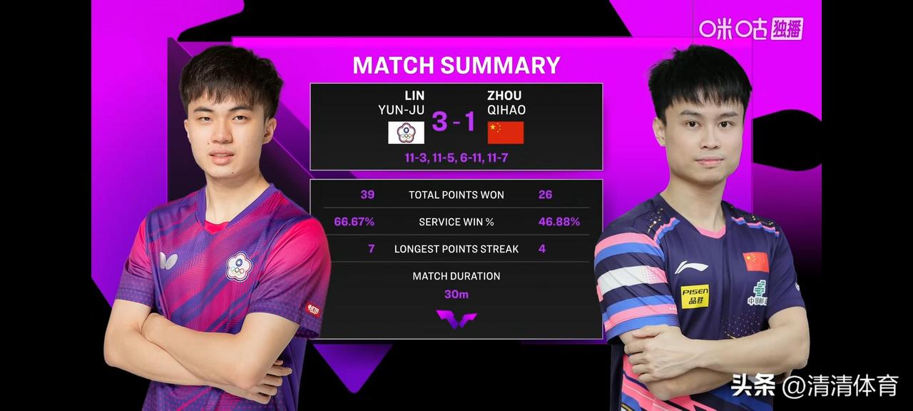 七号又没能顶住。1-3止步16强!跟林昀儒相比,七号还差了不少,进攻质量和衔接以及比赛经验都不是一个级别,确实打不过。特别想问问七号:为啥退那么远,一直远台没有得过分,还动不动就退台?