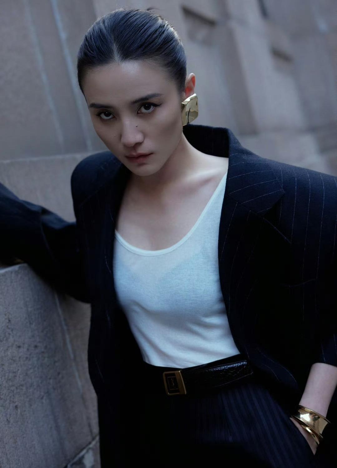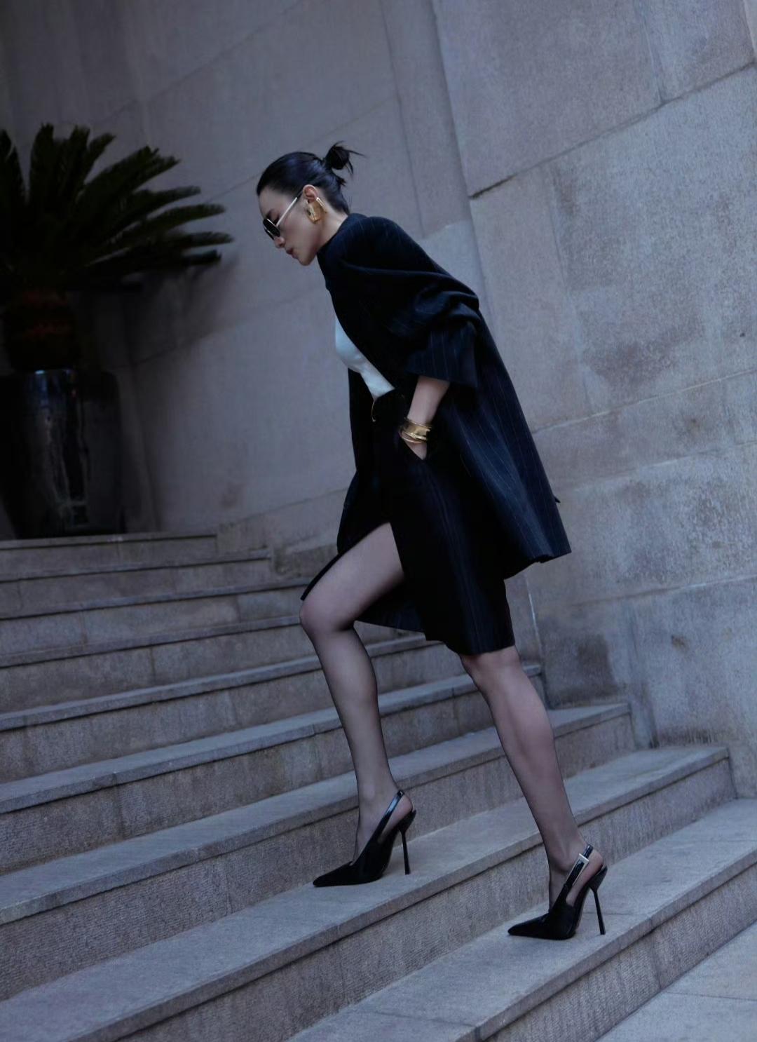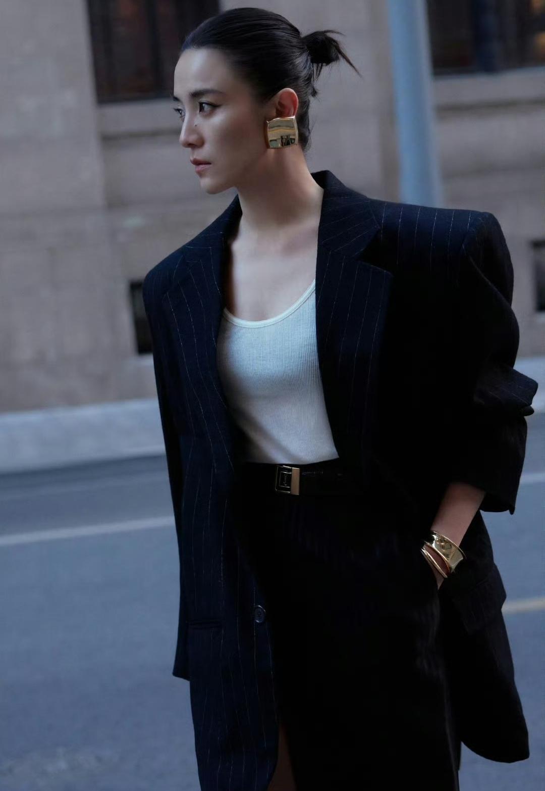 宋佳这组黑衣造型,挺显身材呀。 利落的高颅顶发髻,墨镜一戴,生人勿近的气场直接拉满。 暗纹黑西装松松垮垮搭在身上,内搭一件简单的白背心,松弛感拉满的同时,又藏不住优越的身材线条。 黑金腰带一收,直接把腰线掐得恰到好处,下半身的开叉半裙,露得克制又性感,黑丝加持,熟女的风情直接要溢出屏幕!