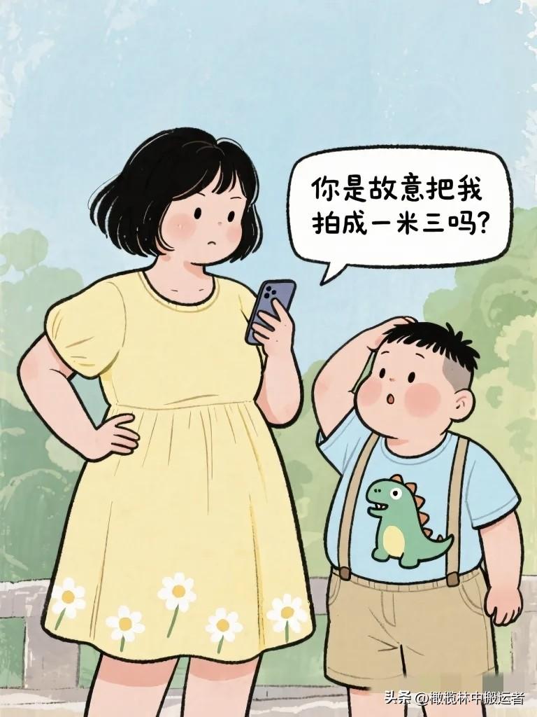 搞笑漫画:姐姐摆了美美的pose:“帮我拍好看点!” 弟弟拍了十几张。 姐姐满怀期待地看,沉着脸:“你是故意把我拍成一米三吗?”