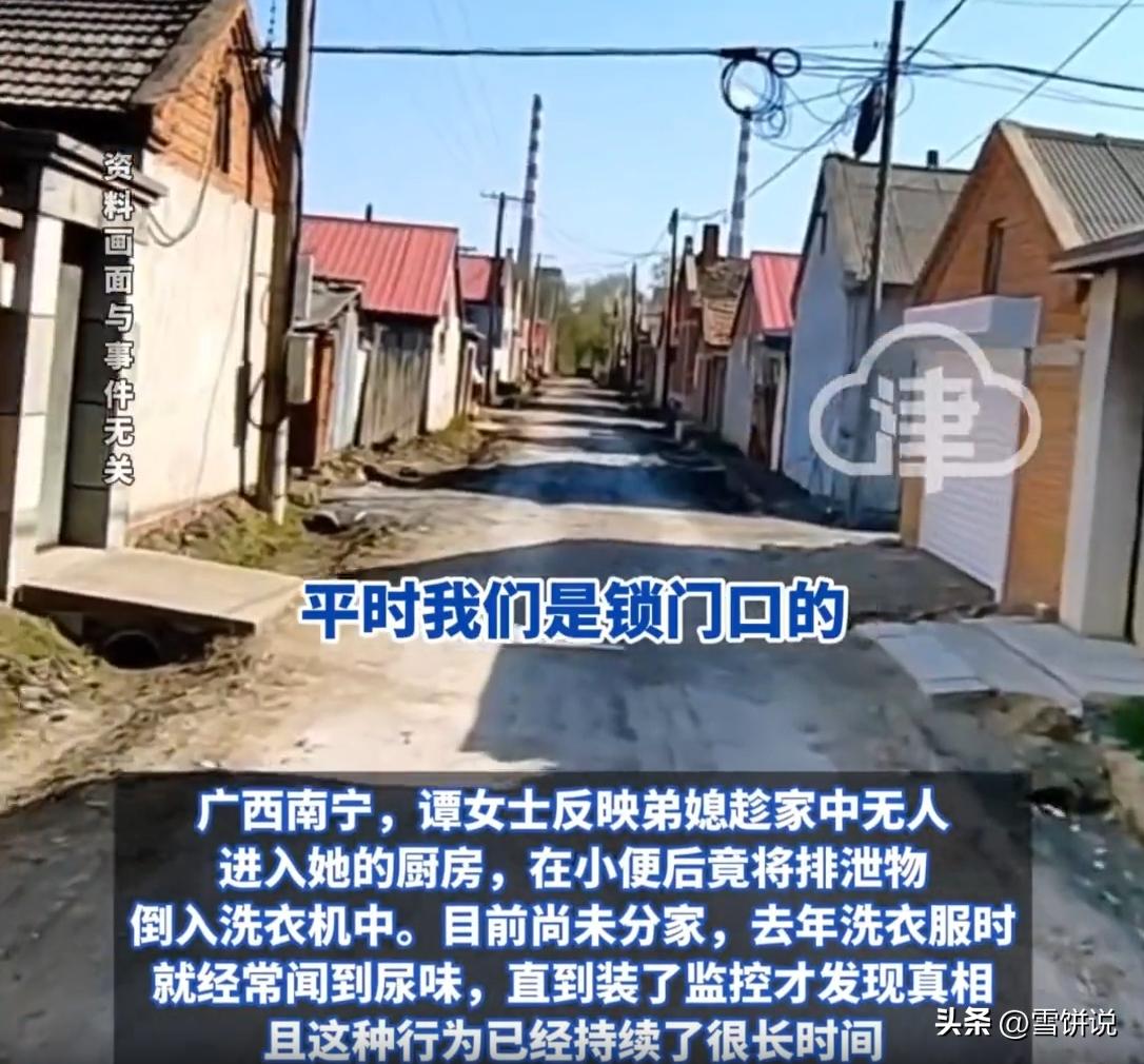 这下过分了!广西南宁,女子总是觉得衣服有尿骚味,而且越是刚洗完的衣服味道越大,女子疑惑,就在家里装了监控,结果却发现弟媳拿壶上厕所后把排泄物倒进洗衣机,女子一气之下把这个事曝光到了网上 谭女士家里情况比较特殊,还没分家,一大家子人住在一块儿。她老公有个弟弟,弟弟的老婆也就是谭女士的弟媳,也住在这个屋檐下。本来妯娌之间在一个锅里吃饭,勺子难免碰锅沿,有点小摩擦也正常 但怪就怪在,从去年开始,谭女士每次洗衣服,总感觉衣服上有股怪味。那股味道不是普通的汗味,而是一种说不上来的尿骚味,特别上头 一开始谭女士还以为是自己晾衣服的地方不对,或者是洗衣机用久了有细菌,她还特意把洗衣机清洁了好几遍。可不管怎么弄,那股味道就像长在衣服上了一样,尤其是刚洗完甩干那会儿,凑近一闻,简直能把人熏个跟头 这事儿就这么稀里糊涂过了大半年,谭女士心里一直有个疙瘩,但又不知道问题出在哪儿。后来她琢磨着,这事情肯定有蹊跷,于是就在家里不起眼的地方装了个监控,想看看到底是怎么回事 结果不装不知道,一装吓一跳 那天家里刚好没人,弟媳瞅准了这个空子,溜进了谭女士用的厨房。只见她顺手拿起一个壶,然后做了件让人完全想不到的事 她进了厨房旁边的厕所,完事后,竟然提着那个壶,径直走向洗衣机,把里面的东西全倒进了洗衣机的滚筒里。倒完之后,还若无其事地把壶放回原位,然后离开了 谭女士看到这段监控,整个人都懵了。她这才恍然大悟,难怪去年一整年洗的衣服都有那股骚味,原来这根本不是洗衣机的问题,是有人故意使坏。而且根据监控拍到的内容和弟媳后来的说法,这种事情已经不是一次两次了,持续了相当长的时间 谭女士气得浑身发抖,立马报了警。警察来了之后,把弟媳叫来问话。面对证据,弟媳倒也没抵赖,直接承认了 至于为什么要这么干,她的理由听起来既简单又让人无语:就是因为之前跟谭女士发生过口角,心里一直憋着气,对她们家有意见,所以才出此下策,用这种方式来发泄心里的不满 现在事情闹开了,警察也介入了。但由于这种事儿属于自诉案件,警方在调查后建议谭女士走法律途径,去法院起诉处理。也就是说,如果谭女士真要追究到底,这事儿就得打官司了 不得不说,这真是林子大了什么鸟都有,每天穿的、贴身的衣服,竟然被人偷偷倒了这种东西进去,而且整整一年都不知道。这种事比当面吵一架要可怕得多 弟媳说是因为口角,心存不满。但邻里之间、妯娌之间,谁家没有个磕磕绊绊?正常的矛盾,最多就是吵几句嘴、摔个门,或者在背后说几句坏话。但这种手段,已经完全超出了正常吵架的范畴 这得是多深的恨意,才能干出这种事?而且她还不是干一次,是持续了很长一段时间,这种报复方式,已经不是脾气差了,是有点损 雪饼说