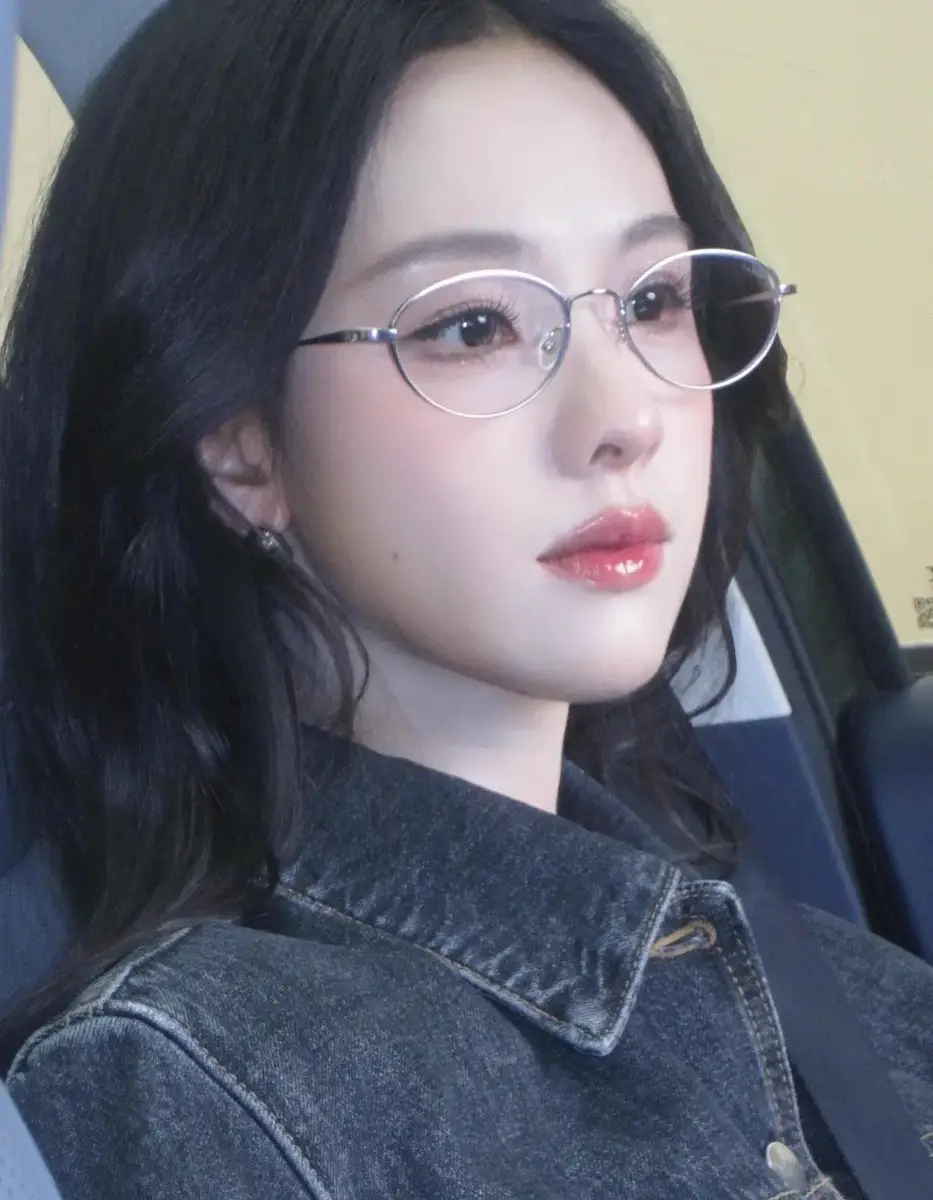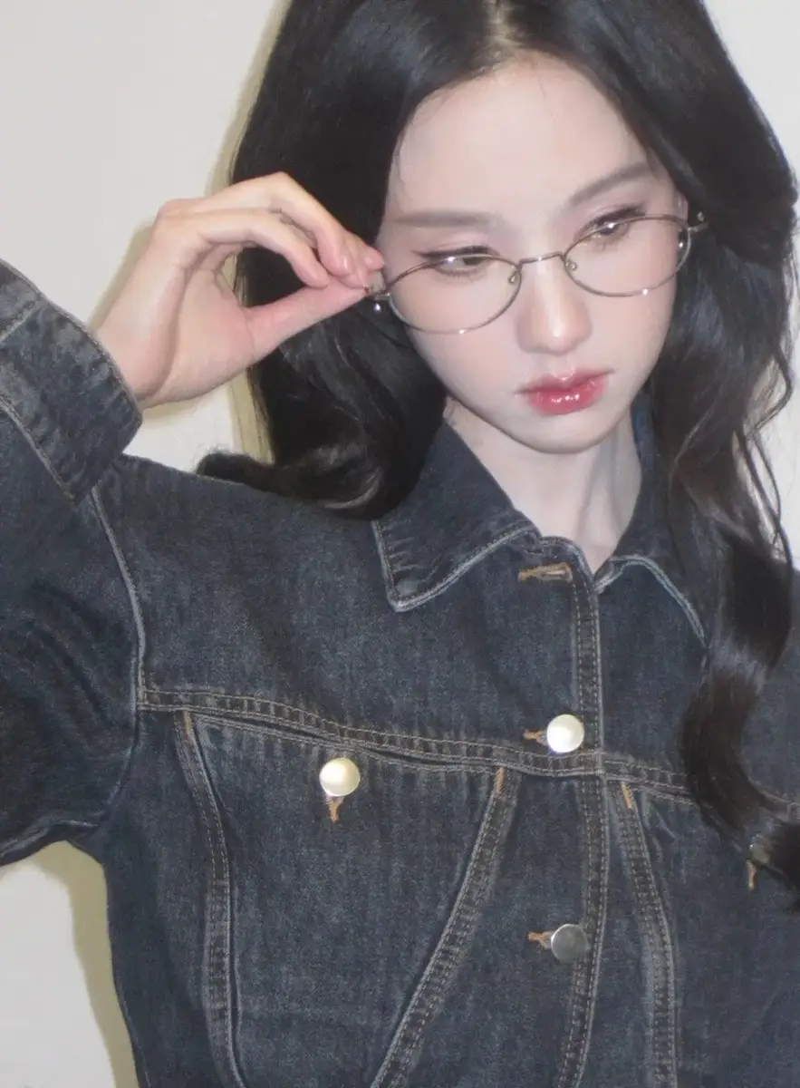 陈都灵留大波浪卷发戴细框眼镜清冷文艺 穿牛仔外套气质干练脱俗