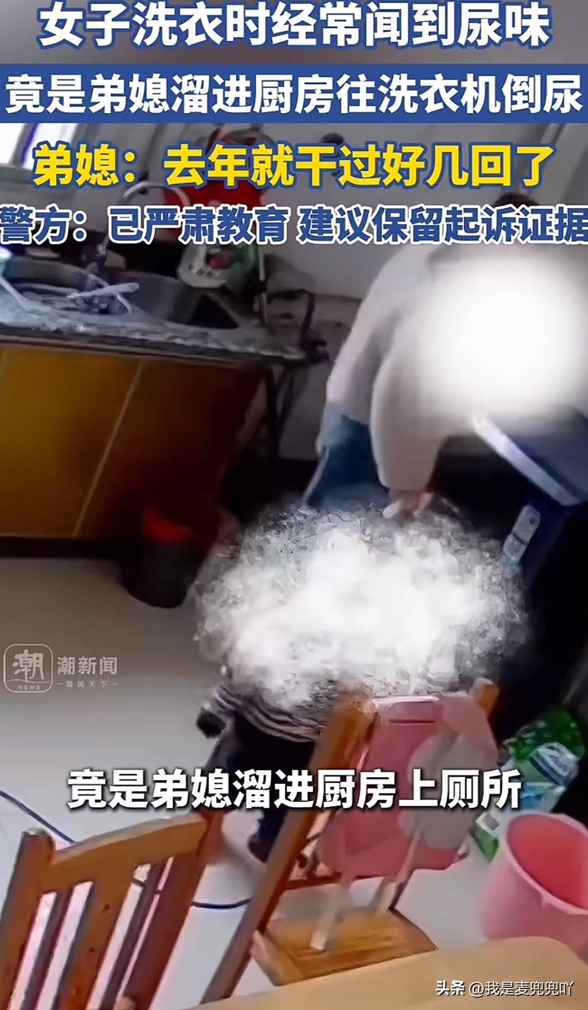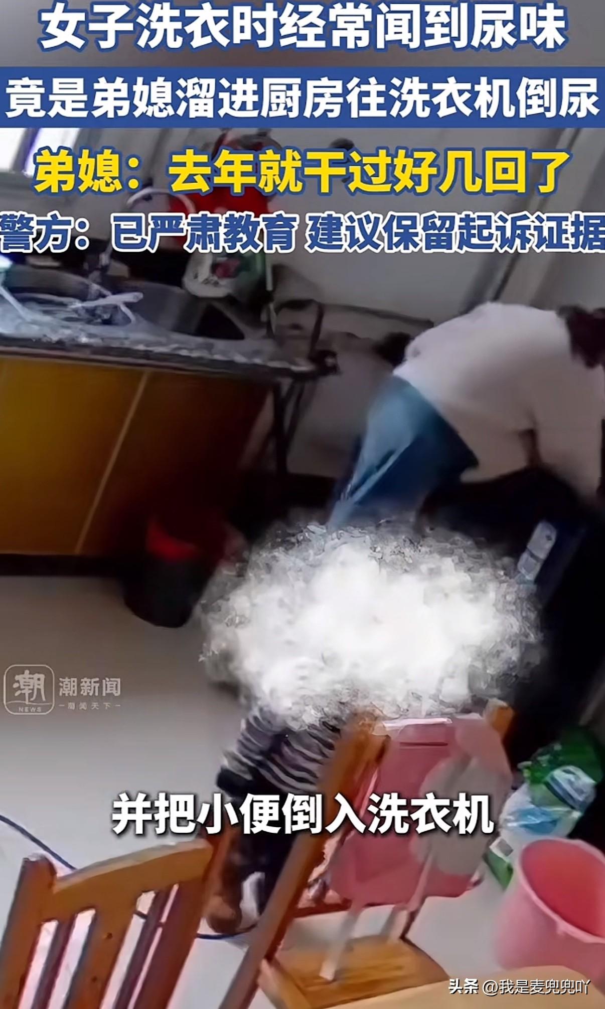弟媳偷溜进嫂嫂家厨房用烧水壶接尿后倒进洗衣机以此来恶心嫂嫂 广西南宁的谭女士网络平台公布家庭监控录像让弟媳身败名裂 谭女士说因为没分家与弟媳一家虽住在一栋楼里,但平时各用各的厨房,从去年开始她就发现刚洗好的衣服总有一股尿味,然后偷偷在厨房装了监控这次又发现洗好的衣服有尿味就调了监控发现竟然是弟媳趁着她不在家到厨房拿烧水瓶接了小便后又倒进洗衣机里 谭女士说与弟媳因家庭琐事发生过争吵但没想到她会做这么恶心人的事,虽然报了警但还是把监控发出来,这次是被监控拍下没有监控的地方谁知道她还会做出什么事来 确实家庭矛盾不可避免但能做出这样行为的人却不得不防,小动作太多了难保以后不会做出什么不可挽回的大事来