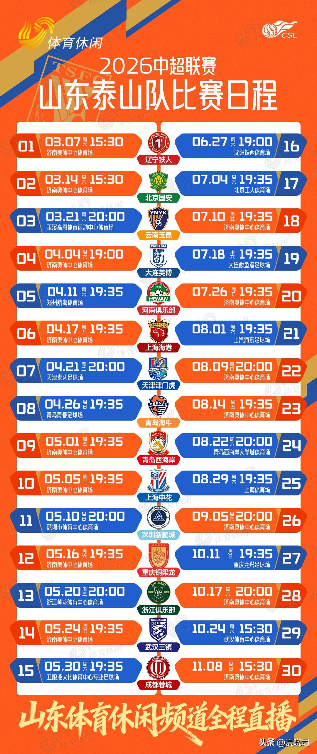 本周六下午三点半,山东泰山主场对阵北京国安,主裁判麦麦提江。