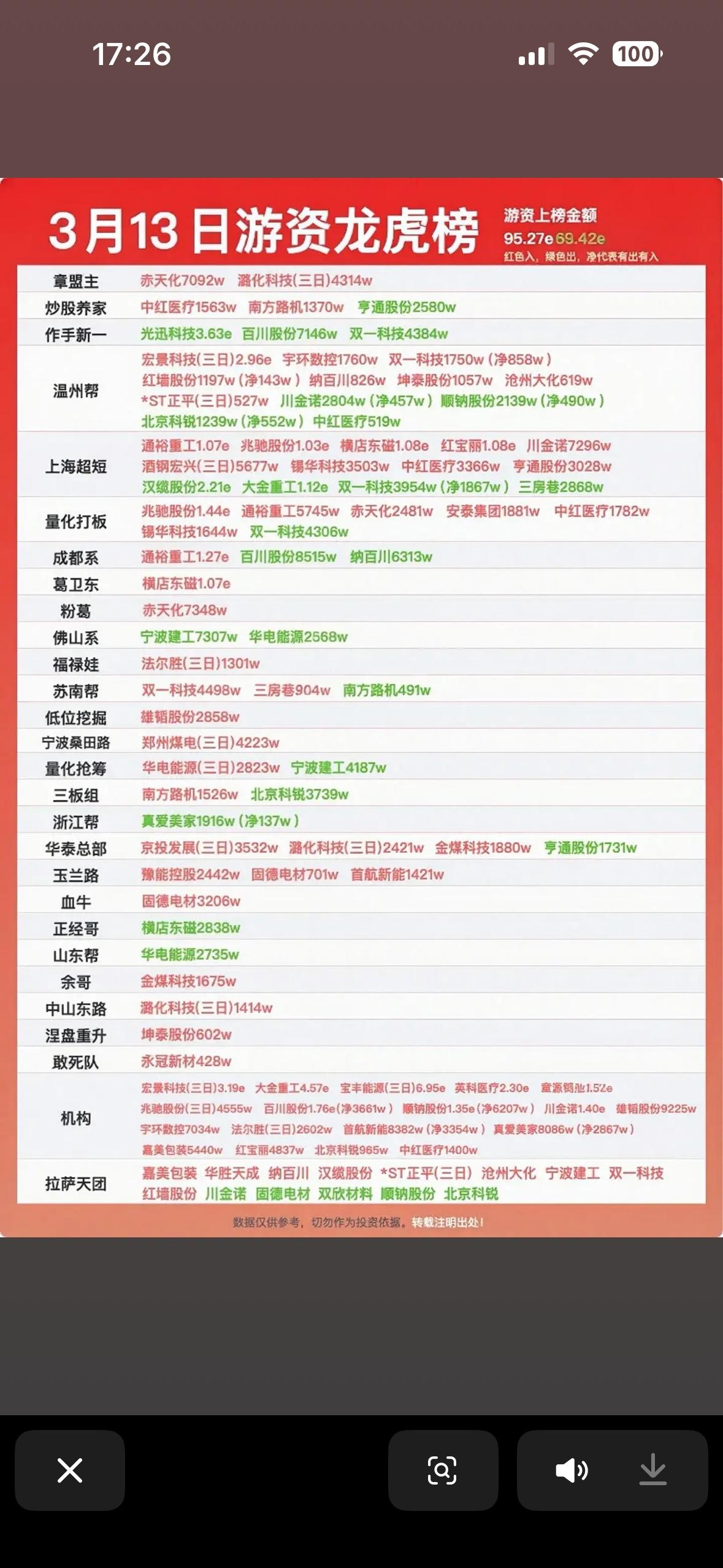 3月13日龙虎榜有点意思。 双欣材料当日上涨5.79%,全天换手率41.14%,成交额14.71亿元。机构净卖出365.34万元,不过深股通净买入585.48万元,营业部席位合计净买入739.25万元。主力资金净流入5581.86万元,近5日主力资金净流入1.84亿元。 再看豫能控股,当日跌停,全天换手率14.76%,成交额37.00亿元。营业部席位合计净买入2348.59万元。主力资金净流出2.51亿元,近5日主力资金净流出8.61亿元。近半年该股累计上榜龙虎榜8次,上榜次日股价平均涨5.38%,上榜后5日平均涨24.39%,这数据很有看头。