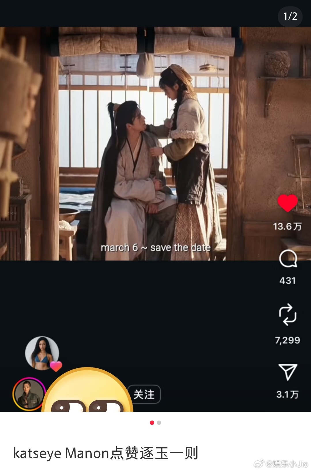 美国女团katseye里的成员Manon在点赞逐玉ins的切片,跟美女爱看同一部电视剧