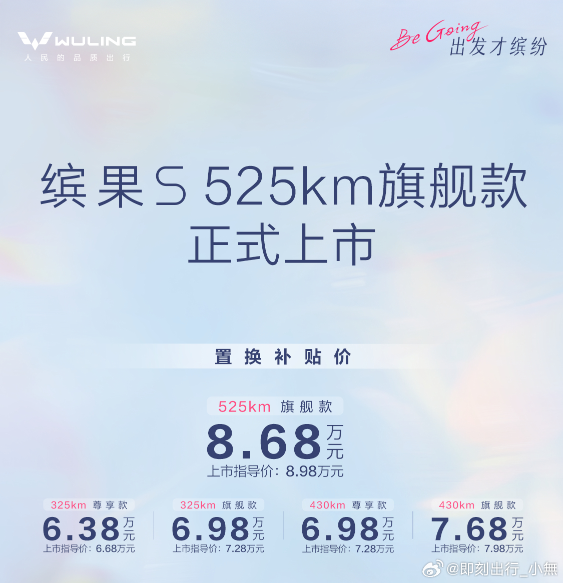 五菱缤果S 525km旗舰款正式上市置换补贴价6.38万起,A0级纯电长续航卷王就位✨核心续航/动力▪️CLTC续航525km,52.9kWh大容量电池▪️75kW前置电机,百公里电耗11.6kWh▪️快充30%-80%约半小时,一周通勤一充智能配置拉满▪️8.88英寸液晶仪表+12.8英寸高清中控屏▪️DeepSeek大模型语音,多方言识别▪️50W风冷无线充电、无感进入/启动、蓝牙钥匙▪️540°全景影像、定速巡航空间与实用▪️车身4265×1785×1600mm,轴距2610mm,5门5座▪️后备厢可拓展至1450L,下沉式大储物▪️超纤皮双拼座椅、多功能方向盘、6扬声器▪️3.3kW外放电、后视镜加热/折叠、萌宠模式上市权益✅无门槛置换补贴3000元✅金融至高贴息2000元✅送充电桩+安装、3M太阳膜✅三电终身质保、3年车机无限流量五菱缤果S