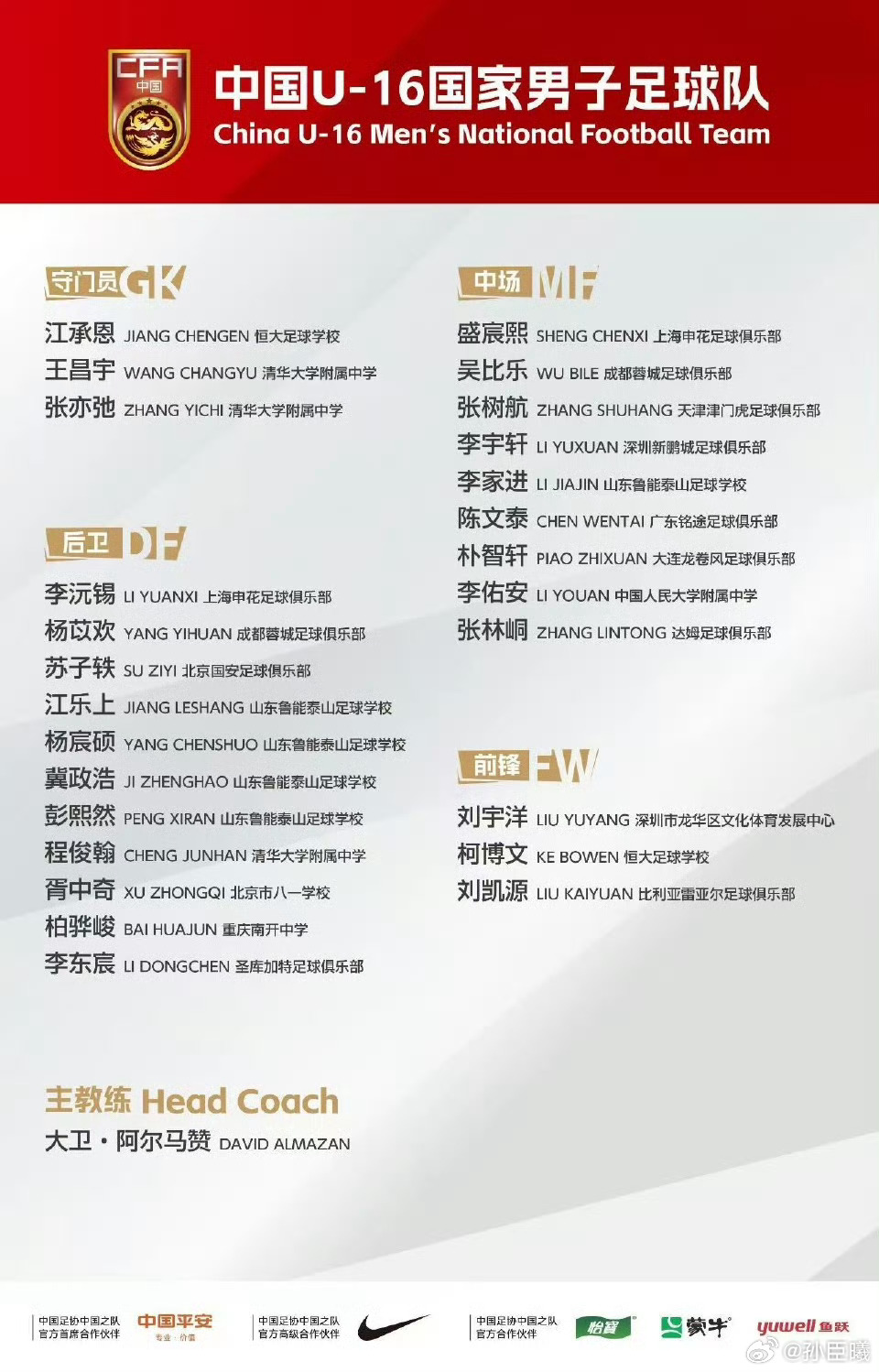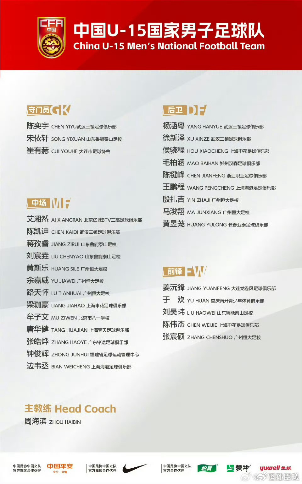 祝贺张皓烨入选U15国家队、陈文泰入选U16国家队.