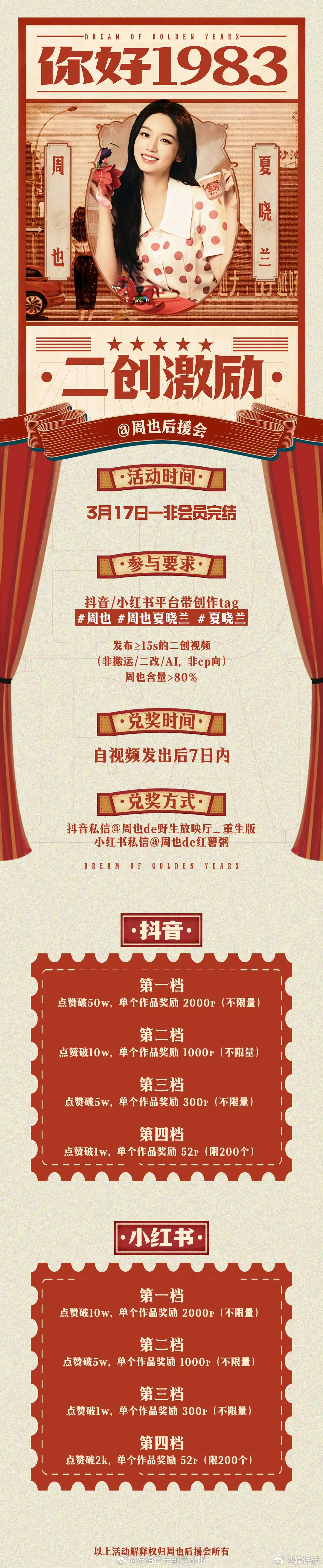 你好1983定档 因《逐玉》顶流待遇而选择取消云包场,周也是第一家吧据说💰都转到二创激励了,内娱以后都这么干吧