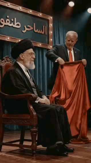 非常形象,有意思!给大家看两段视频,非常有意思!第一段视频是新任伊朗领导人指挥着导弹战机对美国与伊朗进行打击? 第二段视频更有意思,特朗普为之前伊朗的领导人哈梅内伊变魔术,不曾想到哈梅内伊变年轻了!那可不好了,把以色列与美国给吓着了!两个人突然一看这可得了,怎么就变了一个这么年轻的伊朗新任领导人!现在就是把美国领导人与以色列的领导人整的一愣一愣的!