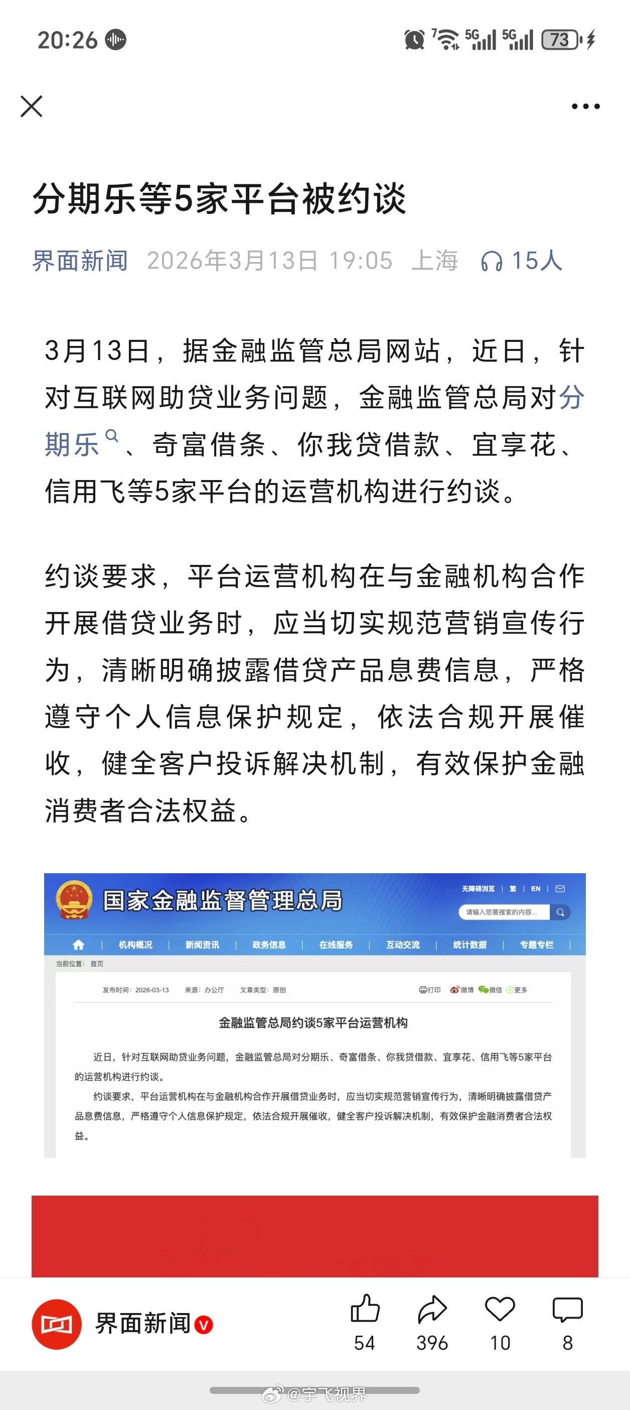 上面新闻正在说约谈互联网助贷业务问题,文末尾就是借贷广告,你们猜是哪家?