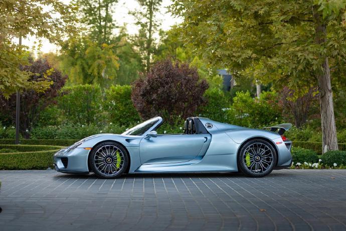 【无声千匹混动神驹 — 保时捷 918 Spyder】这台 918 Spyder 身披Liquid Metal Chrome Blue,是保时捷原厂仅有的两款液态金属漆中,唯一能呈现纯正银蓝色光泽的配色。需注意与同系可选的Rhodium Silver Metallic 铑银金属漆区分,二者虽同为银蓝色调,但前者色彩饱和度更高、光影层次更鲜明,辨识度一眼可辨。该车底盘编号465,出厂未选装 Weissach 轻量化套件,整体外观保持原厂素雅姿态。刹车卡钳与车身徽标专属的Acid Green 酸绿,是保时捷为 918 混动系统开发的标志性色号,后续也沿用于 Panamera、Cayenne 等混动车型,成为电气化时代的视觉符号。坐进座舱,内饰采用Onyx Black 玛瑙黑真皮包覆,这是 918 Spyder 原厂标配的三款基础内饰色之一,另外两款为 Garnet Red 石榴红与 Mocha Brown 摩卡棕。其中 Garnet Red 仅提供基础皮革,Mocha Brown 仅限高端 Authentic Leather,而 Onyx Black 可同时选择两种皮革等级。这台车型选装Onyx Black Authentic Leather,搭配 Acid Green 同色滚边与头枕刺绣,是 918 Spyder 最经典、最具辨识度的内饰组合。Liquid Metal Chrome Blue 自发布起便成为 918 Spyder 最受欢迎的配色,至今仍是藏家与车迷心中不可替代的经典,收藏地位无可撼动。