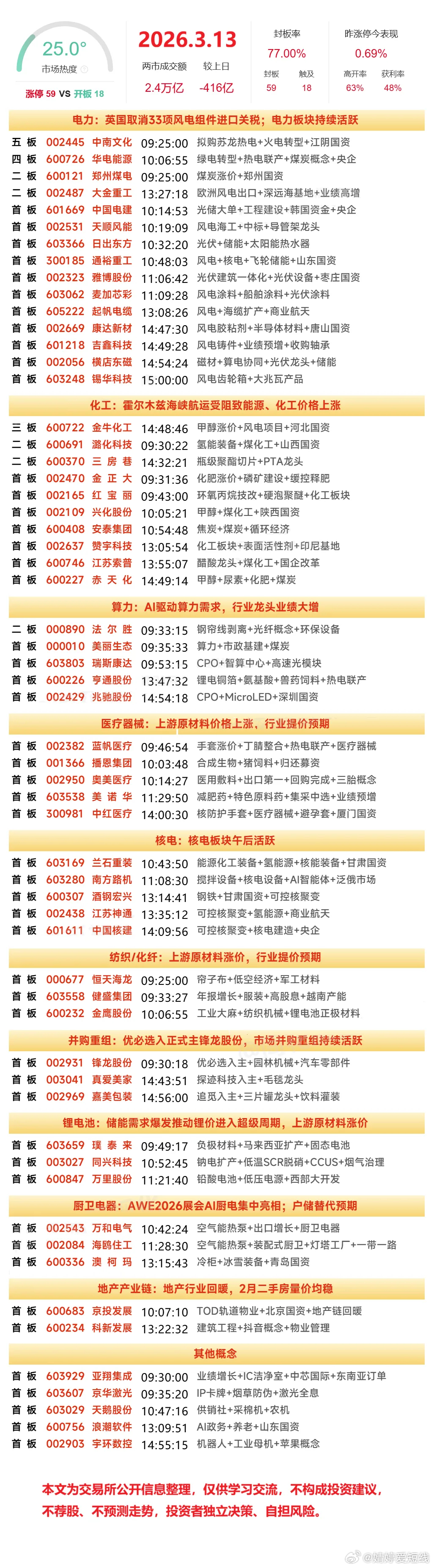 3月13日涨停榜