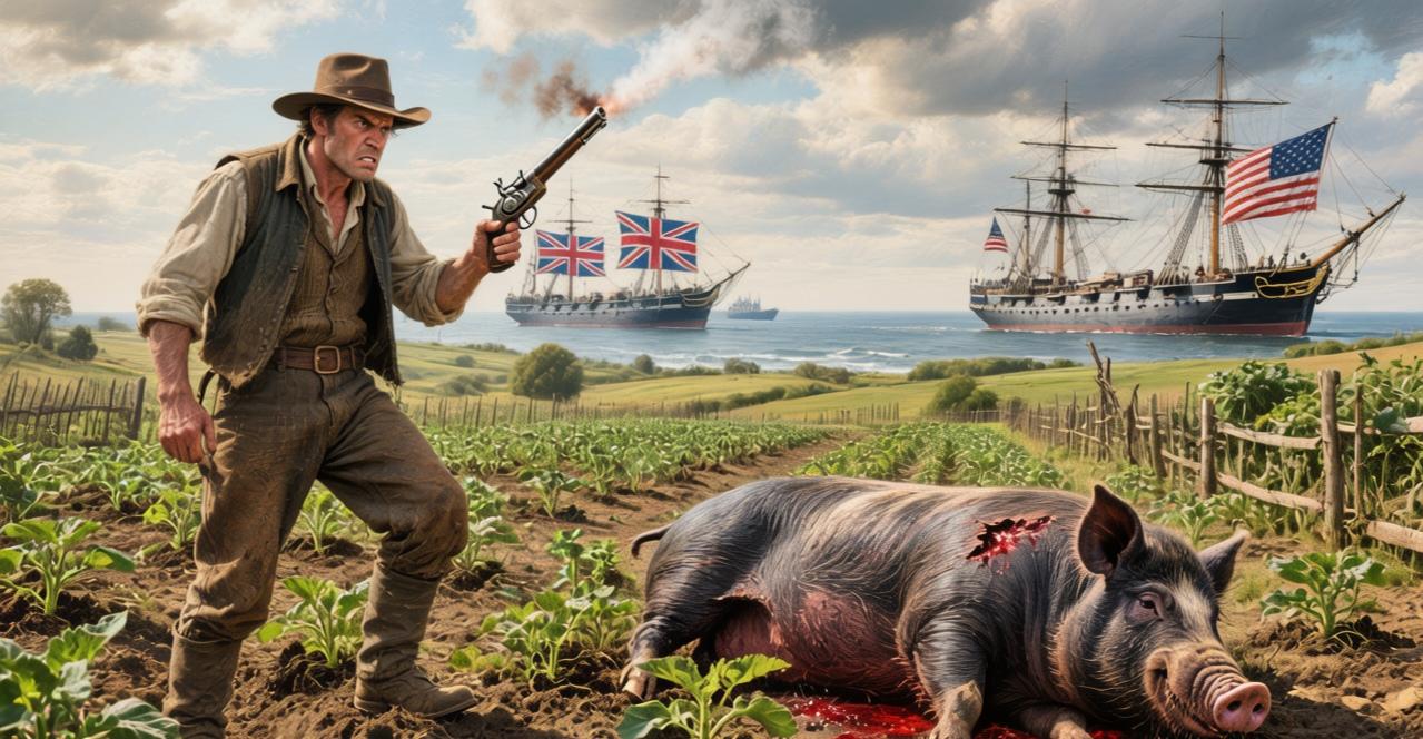 一头猪引发了美国历史上最荒诞的军事冲突。 圣胡安岛上,美国农民卡特勒发现,菜园里的土豆被一头加拿大(当时为英属殖民地)的大黑猪拱得一片狼藉,一气之下开枪毙猪。 英美两国对圣胡安岛的归属本就存在争议。这起民间纠纷随即层层升级:英方索赔100美元,卡特勒只愿赔10美元,双方僵持不下。英方扬言逮捕卡特勒,美方直接派兵护短,英军则调集战舰对峙。巅峰时期,双方陈兵数千、火炮数十门,却默契地一枪未发。 这是1859年真实发生的“猪战”(Pig War)。军事对峙虽在数月后缓和,但主权争议直至1872年才尘埃落定,经国际仲裁,圣胡安岛最终划归美国。全程无人员伤亡,唯一的“牺牲者”便是那头闯祸的猪。 这段历史如今看来依然充满启发性:小事最易成为战争的导火索,双方看似冠冕堂皇的立场背后,真实动机往往如同这起杀猪事件一般,微妙而耐人寻味。