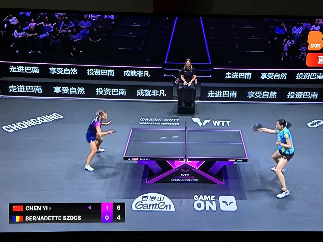 陈熠与索克斯对阵的八分之一女单决赛,打得太惊险了! 陈熠先拿下第一局,第二局两人的比分很胶着,最终索克斯以13比11的比分赢了第二局扳回一局将大比分拉到一比一平。 第三局的时候,陈熠一度比分领先,很快就到九比六了,接着就是10比6的局点,没想到索克斯连得2分,比分就到了10比8,此刻叫了暂停,女单主教练马琳是陈熠的场外教练,他对陈熠进行了指导,继续打比赛,索克斯竟又得2分,比分被追平10比10,这回陈熠出手利索连得2分,以12比10的比分拿下了第二局的胜利。此刻陈熠是二比一的大比分领先。 第四局开局索克斯领先,比分到了五比三,陈熠追上2分五比五,索克斯连得4分领先,比分到了九比五,陈熠追了2分,比分是七比九,索克斯又得2分,11比7拿下来第四局的胜利,大比分成了二比二平,这样就把比赛拉进了决胜局。陈熠,加油啊! 决胜局,索克斯先得一分,激动得尖叫起来,又得一分,第3分第4分被陈熠所获,本局比分来到二比二。陈熠又得2分,将比分反超成四比二领先,陈熠乘胜追击,又得一分比分来到了五比二领先,对手叫了暂停。暂停回来,索克斯先得1分,陈熠不甘示弱连得2分,比分领先7比3,8比3,9比3,九比五,对手得了2分,10比5,陈熠拿到了赛点,10比6,10比7,真是好事多磨!10比8,陈熠稳住,10比9!11比9,陈熠拿下了这场比赛,真是太不容易了! 祝贺陈熠以三比二的大比分惊险晋级!