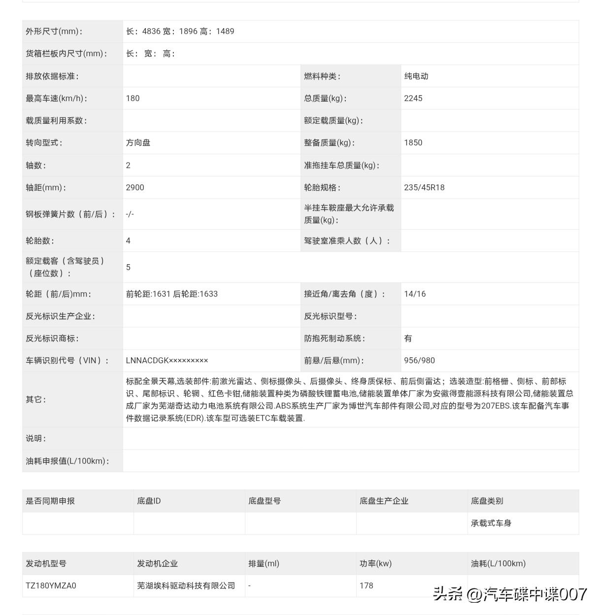 奇瑞风云A9 EV申报信息曝光,新车尺寸为4836*1896*1489,轴距达2900mm,比增程版稍小! 前脸运用封闭式设计,搭配扁平化的logo以及L型日间行车灯,极具辨识度。车顶还配备激光雷达,支持城市和高速NOA,科技感十足。侧面呈轿跑风格,半隐藏式门把手、铝合金轮毂一应俱全。尾部新增“风云A9 EV”标识,后包围设有扩散器。 风云A9 EV预计售价在15 - 18万区间,性价比之高,让比亚迪汉EV车主沉默,甚至有人撤掉银河E8的订金,奇瑞这波稳操胜券!