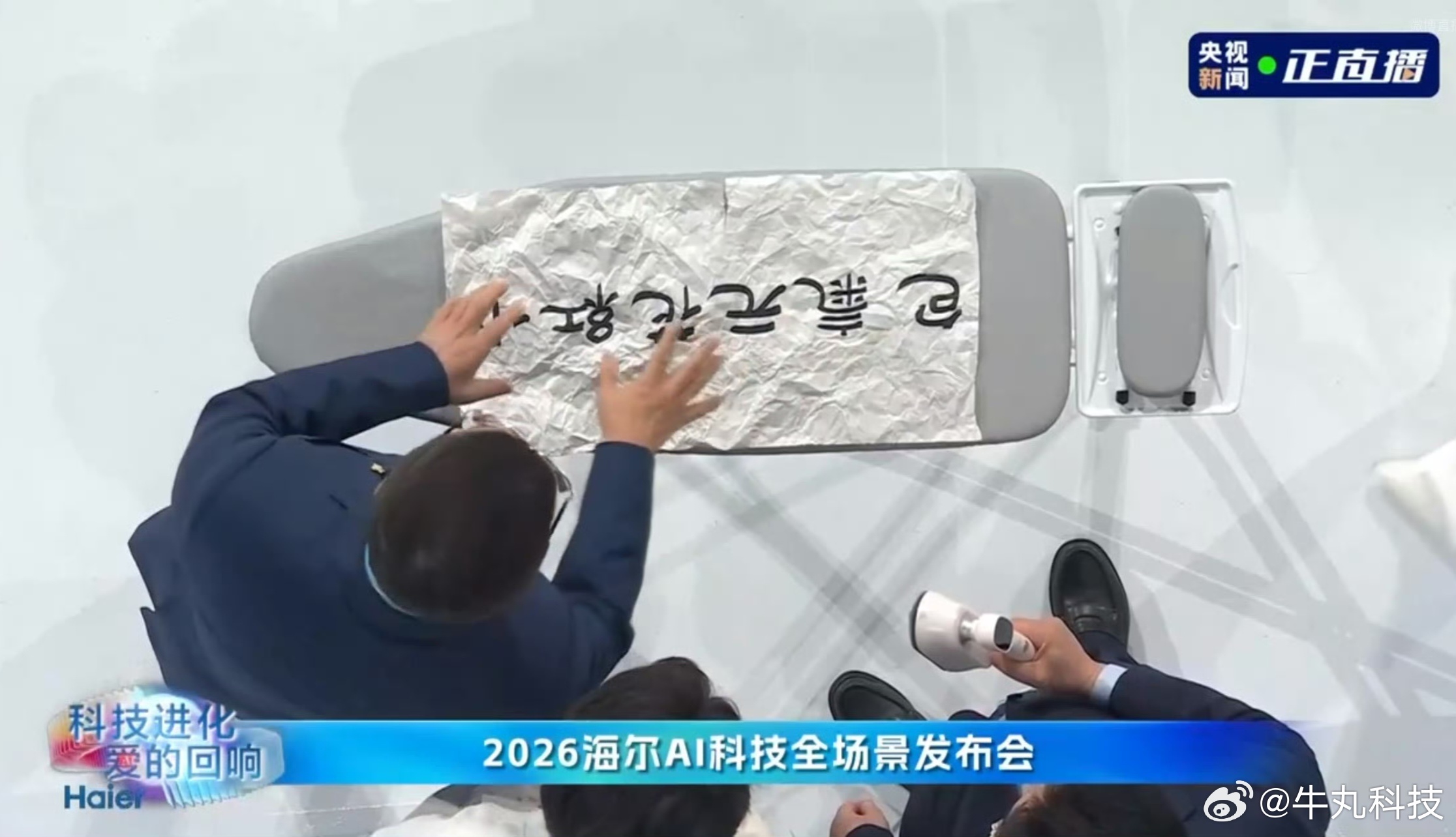宣纸自己都没想过会被AI熨烫机熨平谁能想到,今晚海尔发布会直接整了个神操作,用小