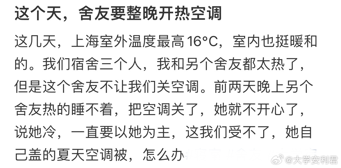 这个天舍友要整晚开热空调