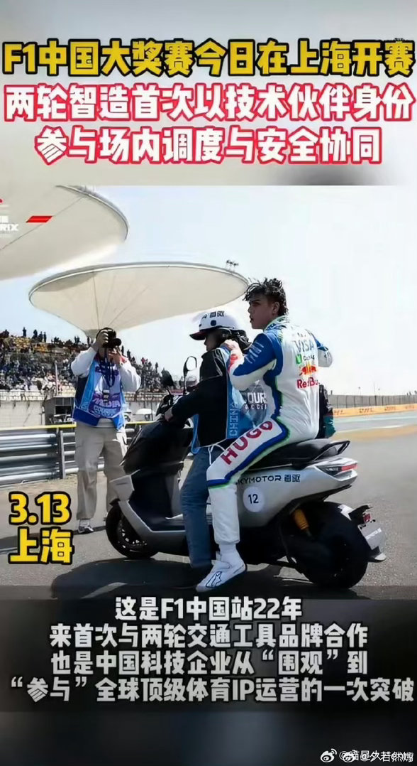 中国智造首次以技术伙伴身份参与F1速度与科技碰撞,中国智造闪耀F1!两轮智造首登赛场成技术伙伴,以硬核研发实力,让中国科技驰骋世界极速赛场。中国两轮智造首登F1赛场