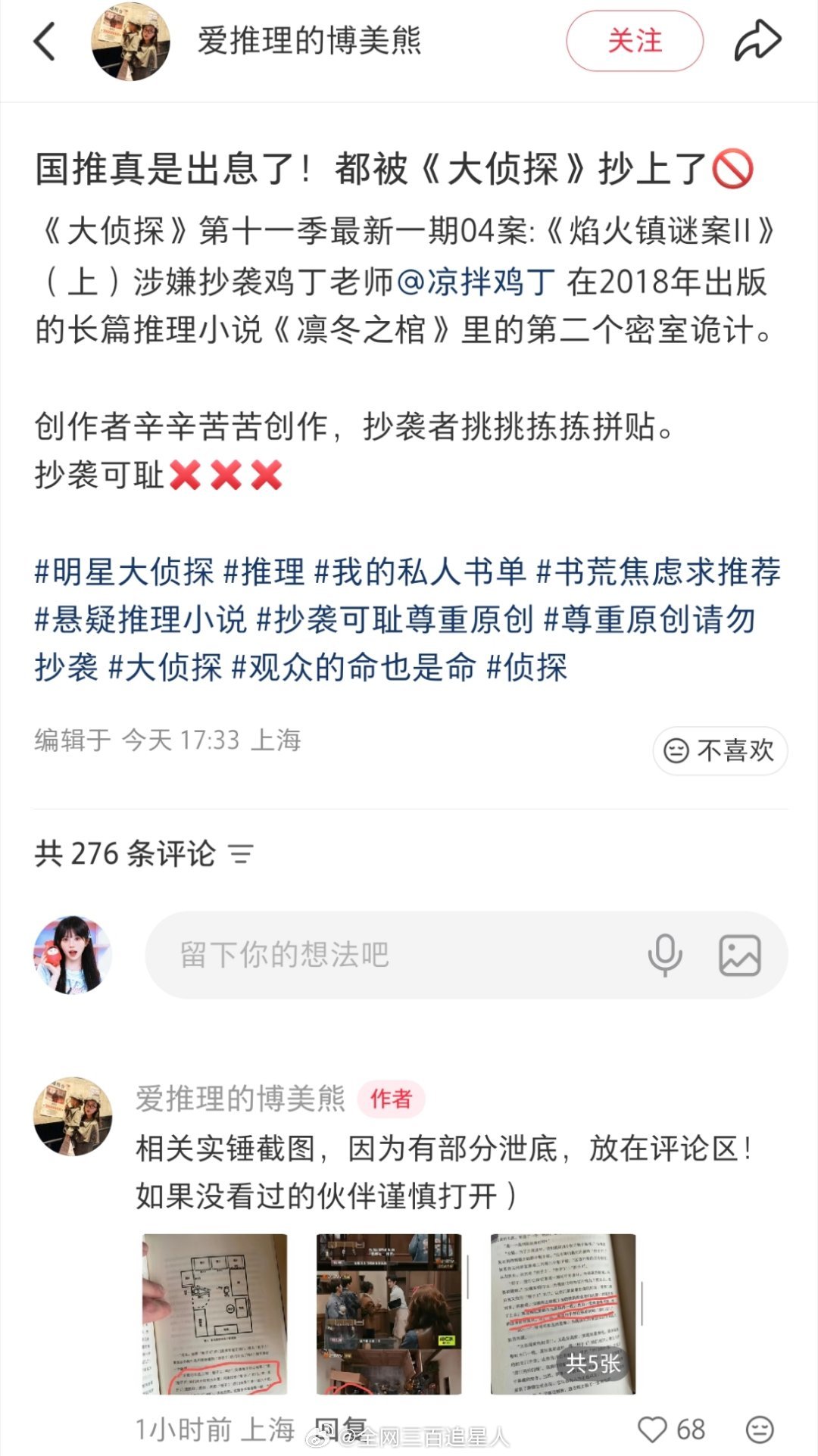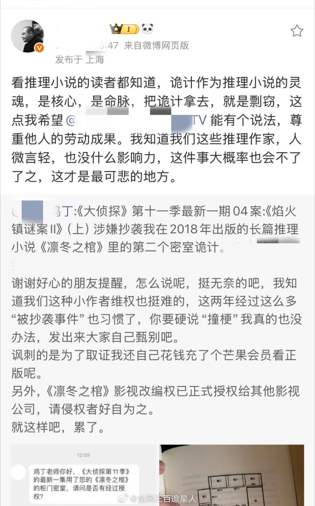 疑似大侦探焰火镇谜案抄袭了推理小说中的内容,不知道会不会有回应