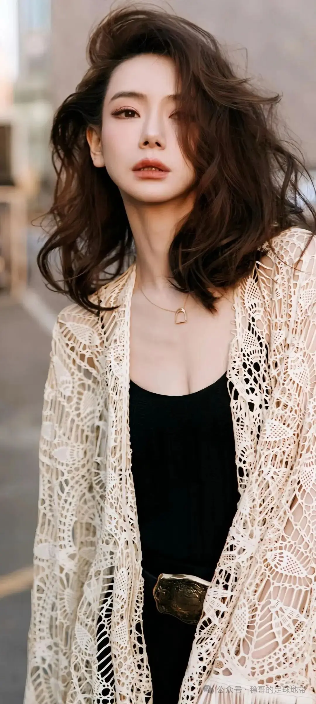 刘亦菲这条裤子挺养生,毕竟降温了肚脐眼必须护住啊