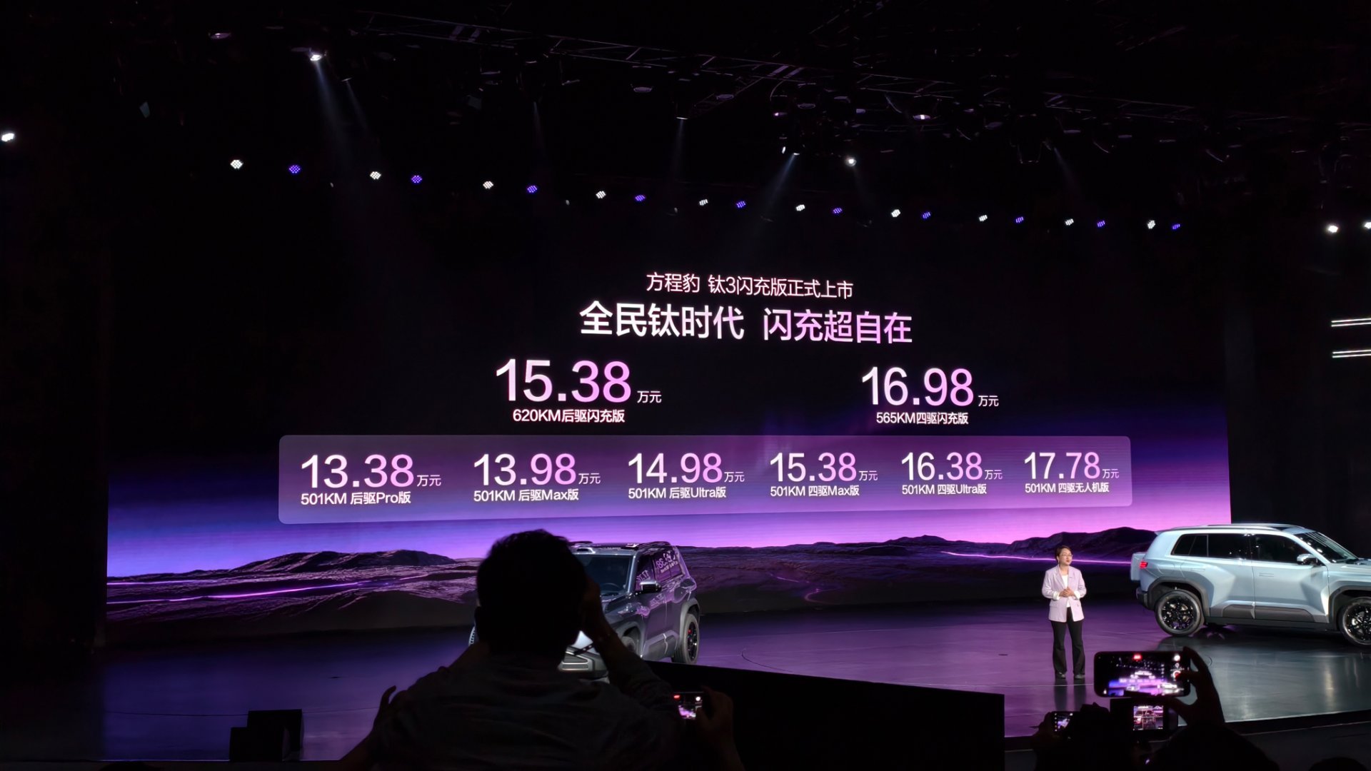 下个月方程豹钛7 闪充版也要来了,今晚同步开启预售,预售价22~25万元。在这次发布会之前,就已经听到大量的人在说等纯电闪充版钛7了,方程豹这个品牌爆款连出啊!