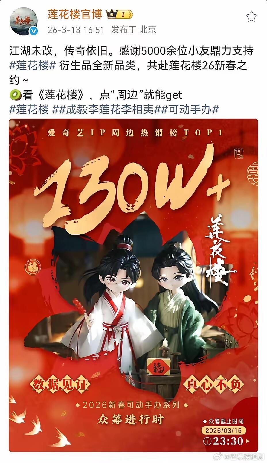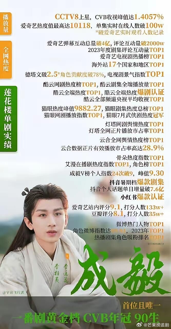 难以想象《莲花楼》都播了三年了居然还在出衍生品为平台赚钱,果然成毅就是最大的IP