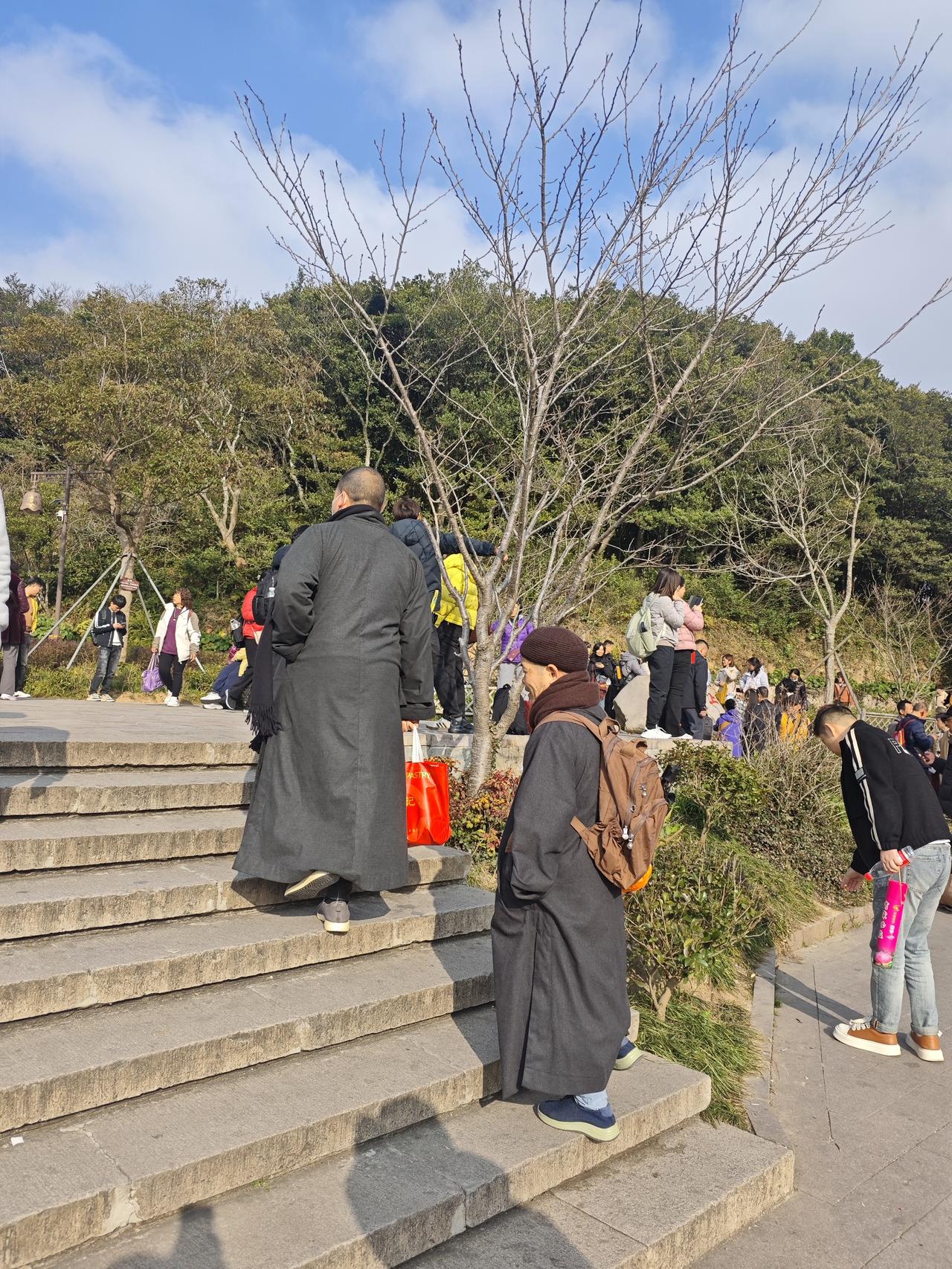 清晨不到5点钟起来吃完早饭,赶坐第一趟6.30分的索道来到普陀山最高处——佛顶山。 虽然是清晨可还是排满了前来烧香拜佛的善男信女们,佛的力量真的超级强大,就连小朋友都不再哭闹安静的跟从家长乖乖的等候着缆车的到来!